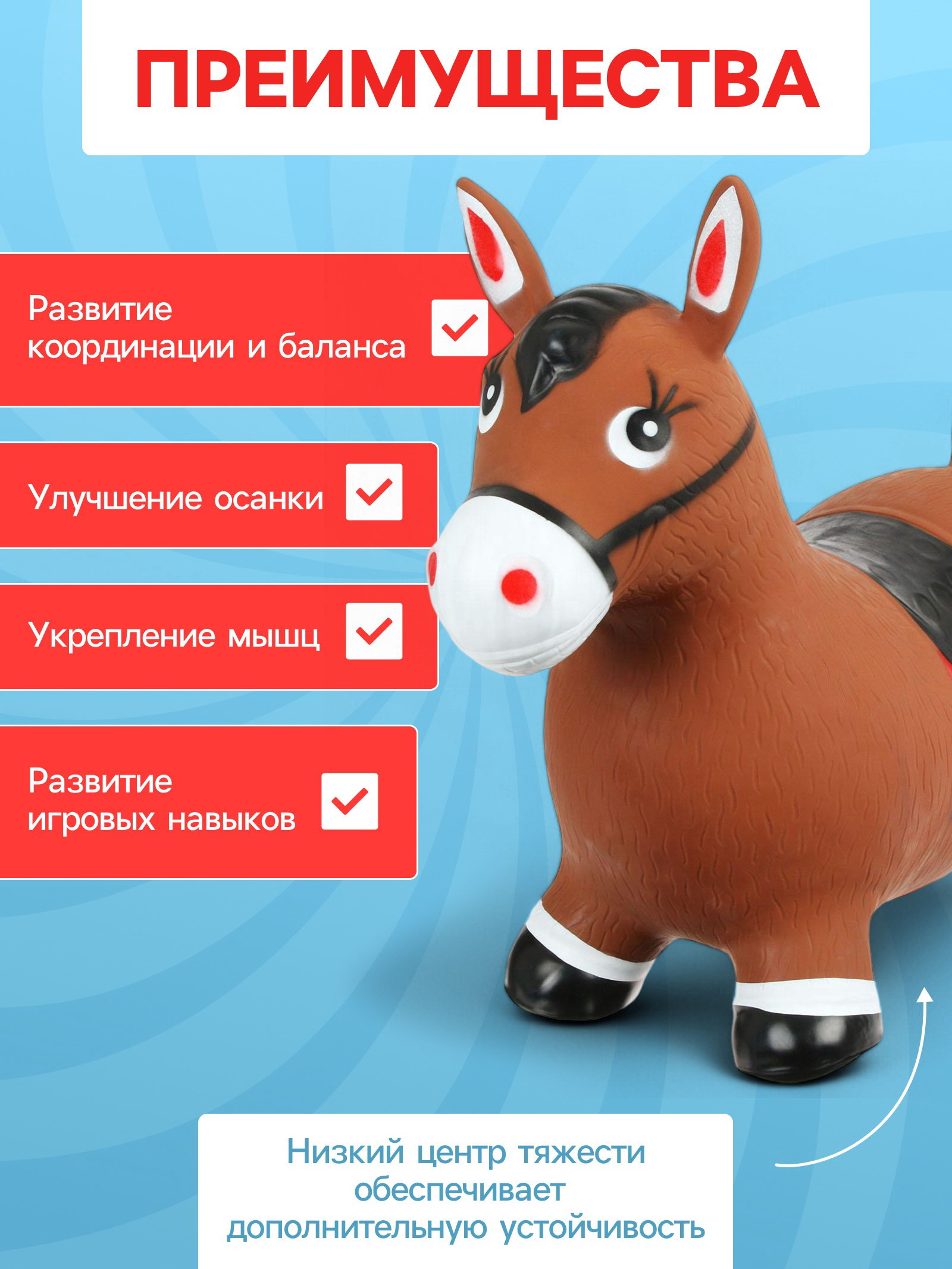 Эта игрушка станет отличным подарком для ребёнка, который любит активные игры. Благодаря своему дизайну и функциональности, лошадка-попрыгун поможет вашему малышу провести время с пользой и удовольствием. Подарите своему ребёнку весёлое времяпрепровождение с этой замечательной игрушкой. Закажите её прямо сейчас и убедитесь в её качестве и практичности! | ||