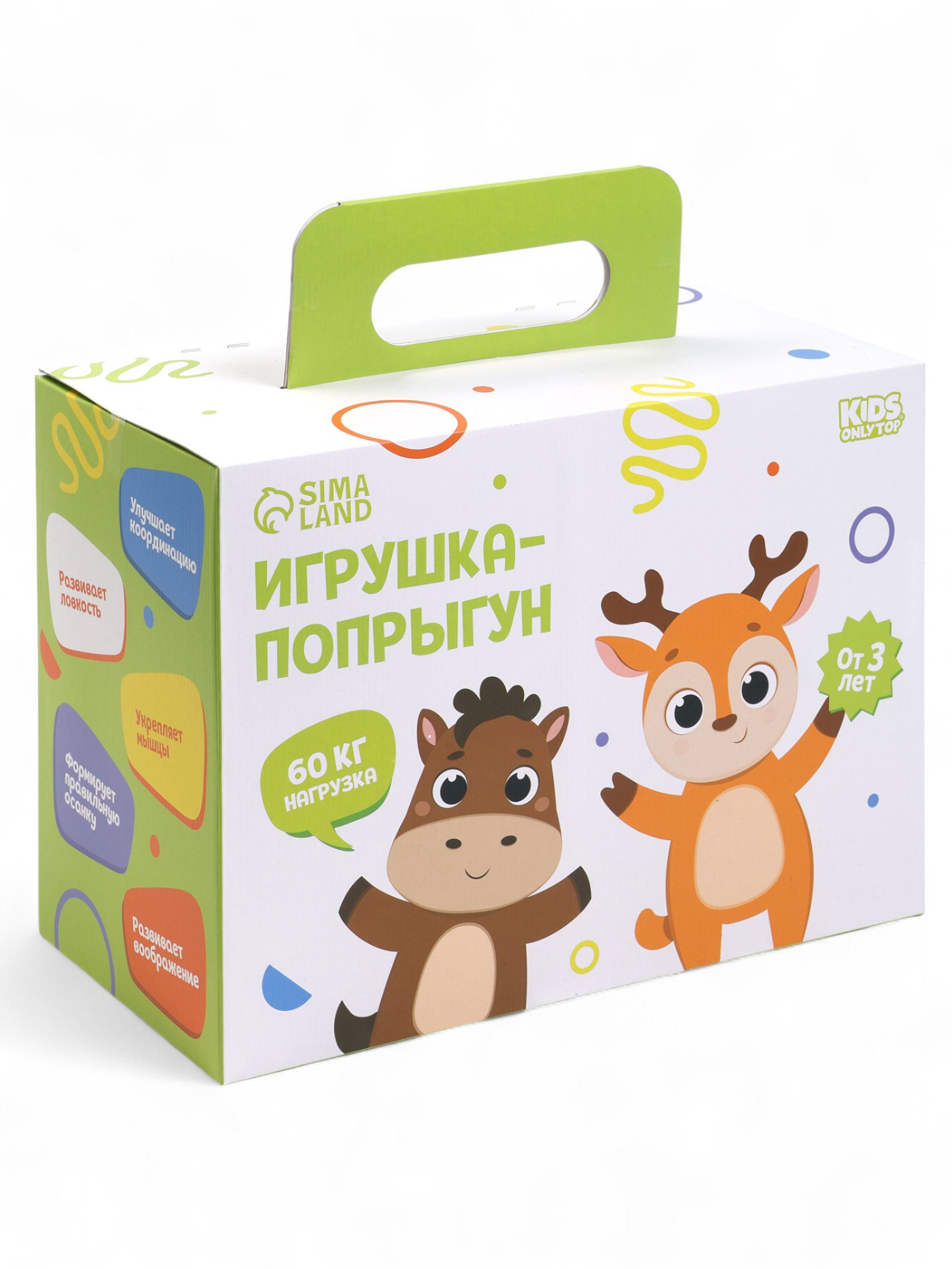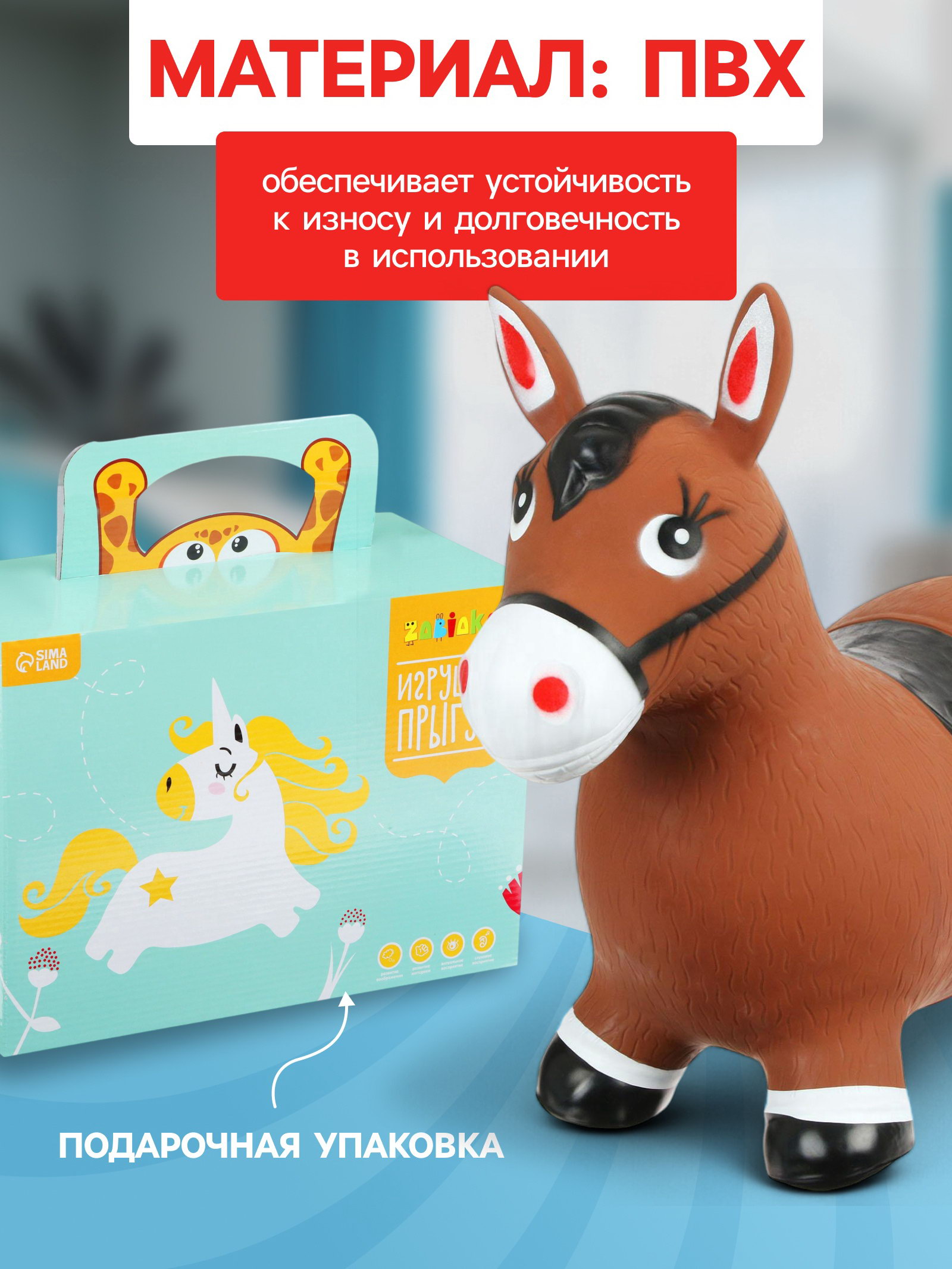 Для кого: Для девочки, Для мальчика, Унисекс Размер упаковки: 25 x 10 x 30 см. Цвет: Коричневый Текстильная отделка: Нет Ширина, см: 29 Высота, см: 50 Длина, см: 55 Вес, г: 1300 Maксимальная нагрузка, кг: 50 Maксимальная нагрузка, кг: 50 tnved: 9503005000 Честный знак: Да Возраст: От 3 лет Игрушка-попрыгун в виде лошадки понравится маленьким непоседам. На ней можно весело прыгать и сидеть, как на стульчике. С её помощью ребёнок сможет развить координацию и укрепить мышечный корсет. Для детей от 3 лет. Преимущества товара: