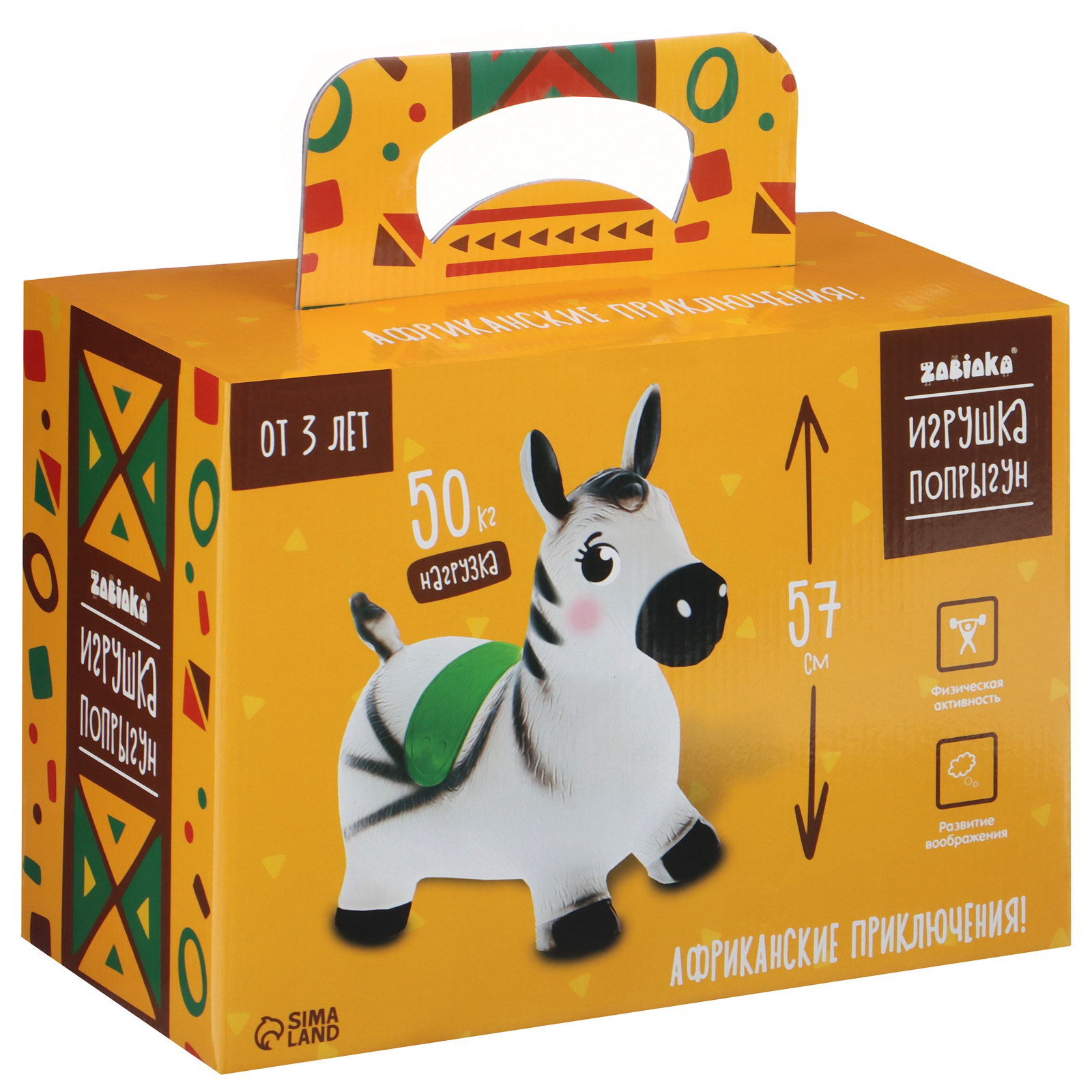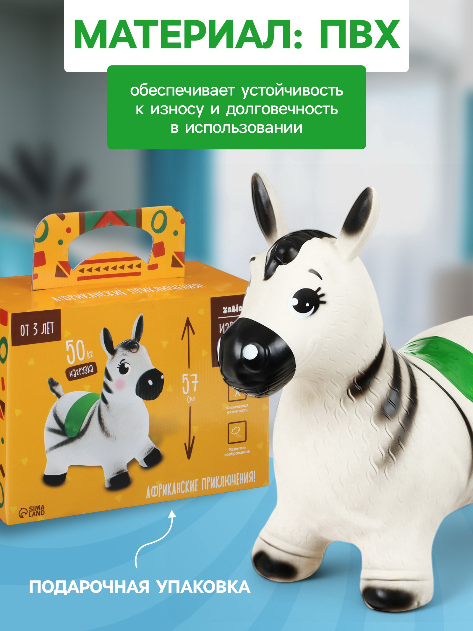 Для кого: Для девочки, Для мальчика, Унисекс Размер упаковки: 22 x 11 x 36 см. Цвет: Белый Текстильная отделка: Нет Ширина, см: 29 Длина, см: 55 Высота, см: 50 Вес, г: 1300 Maксимальная нагрузка, кг: 50 tnved: 9503005000 Возраст: От 3 лет Игрушка-попрыгун в виде зебры понравится маленьким непоседам. На ней можно весело прыгать и сидеть, как на стульчике. С её помощью ребёнок сможет развить координацию и укрепить мышечный корсет. Для детей от 3 лет. Преимущества товара: