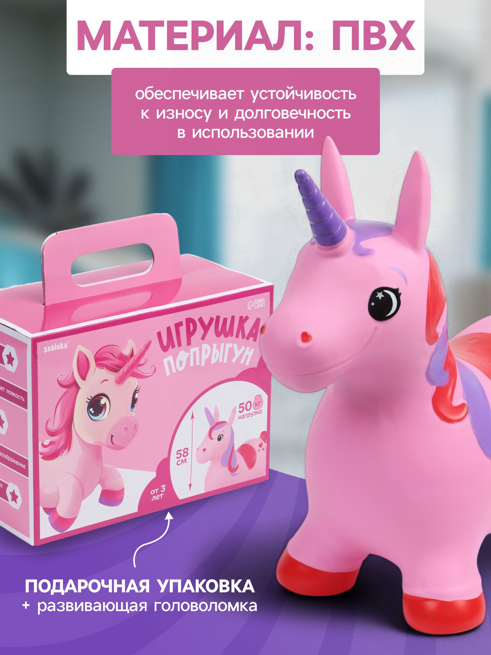 Размер упаковки: 48 x 13 x 62 см. Текстильная отделка: Нет Цвет: Розовый Для кого: Для девочки Возраст: От 3 лет Ширина, см: 25 Высота, см: 50 Длина, см: 51 Вес, г: 1300 Maксимальная нагрузка, кг: 50 Maксимальная нагрузка, кг: 50 tnved: 9503005000 Игрушка-попрыгун в виде единорога понравится маленьким непоседам. На ней можно весело прыгать и сидеть, как на стульчике. С её помощью ребёнок сможет развить координацию и укрепить мышечный корсет. Для детей от 3 лет. Преимущества товара: