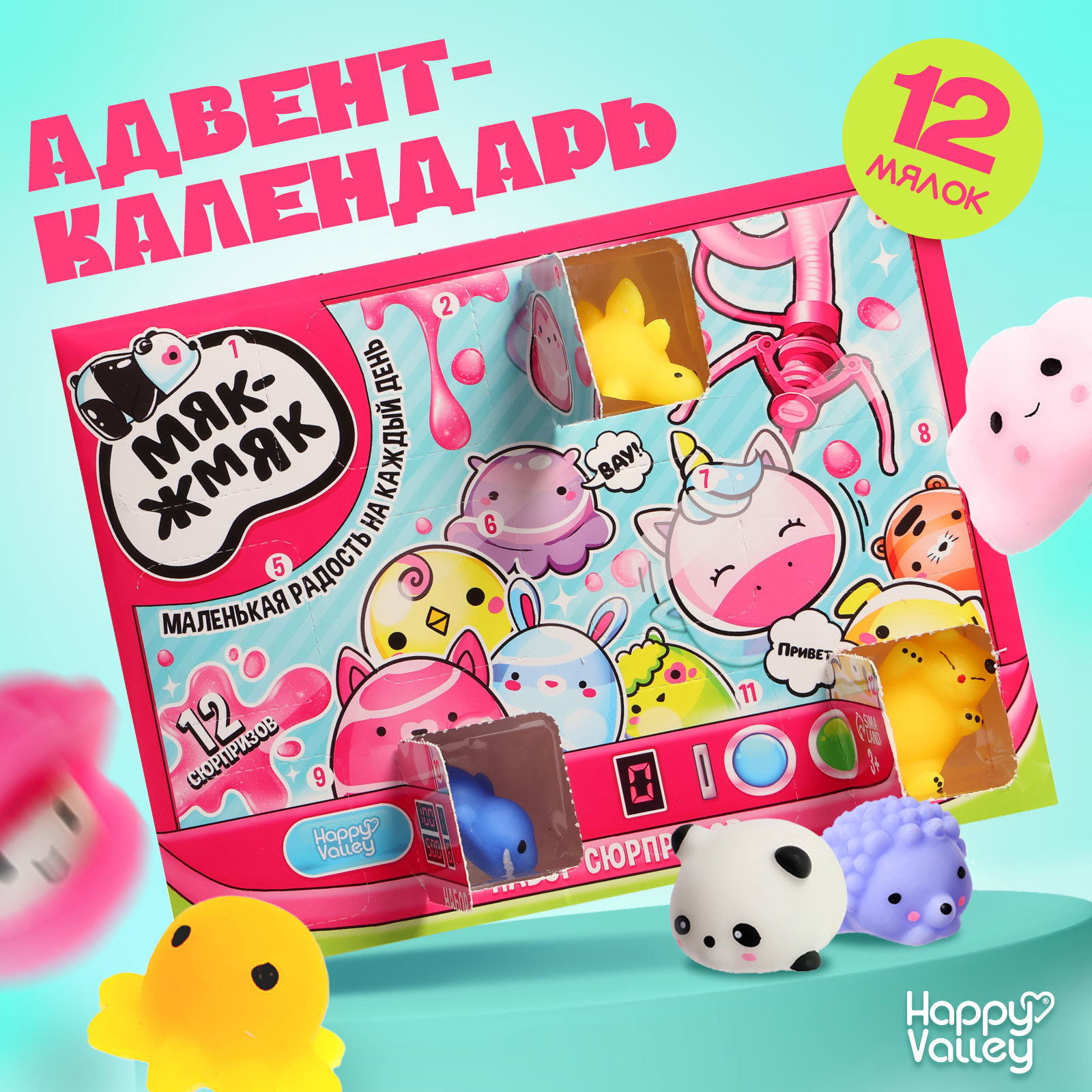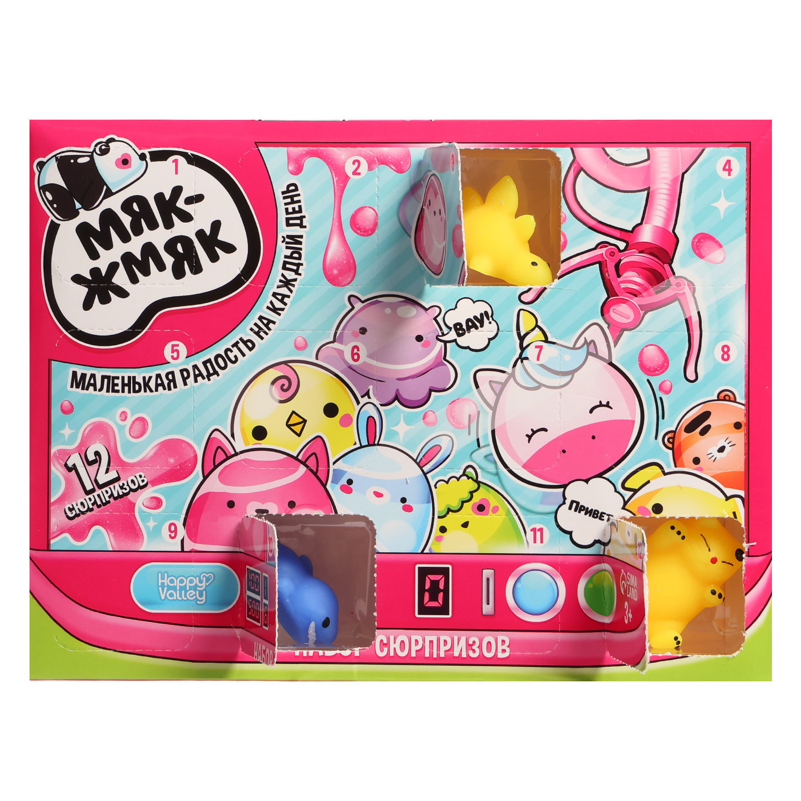 Возраст: Для детей, От 3 лет Размер упаковки: 4 x 19 x 25 см. Для кого: Для девочки Адресат: Без адресата Вид упаковки: Коробка картонная В наборе, шт.: 12 Тематика подарка: Игрушки Составляющие набора: Игрушка-антистресс Тематика праздника: Универсальная тематика Игрушка с видео: Да Набор сюрпризов "Мяк-жмяк" это адвент-календарь с окошками, в которых прячутся жмяки в виде разных интересных фигурок. Открывайте по одному окошку календаря каждый день. Начните открывать его за 12 дней до Нового года или дня рождения ребёнка, так будет интереснее ждать праздник! Особенности