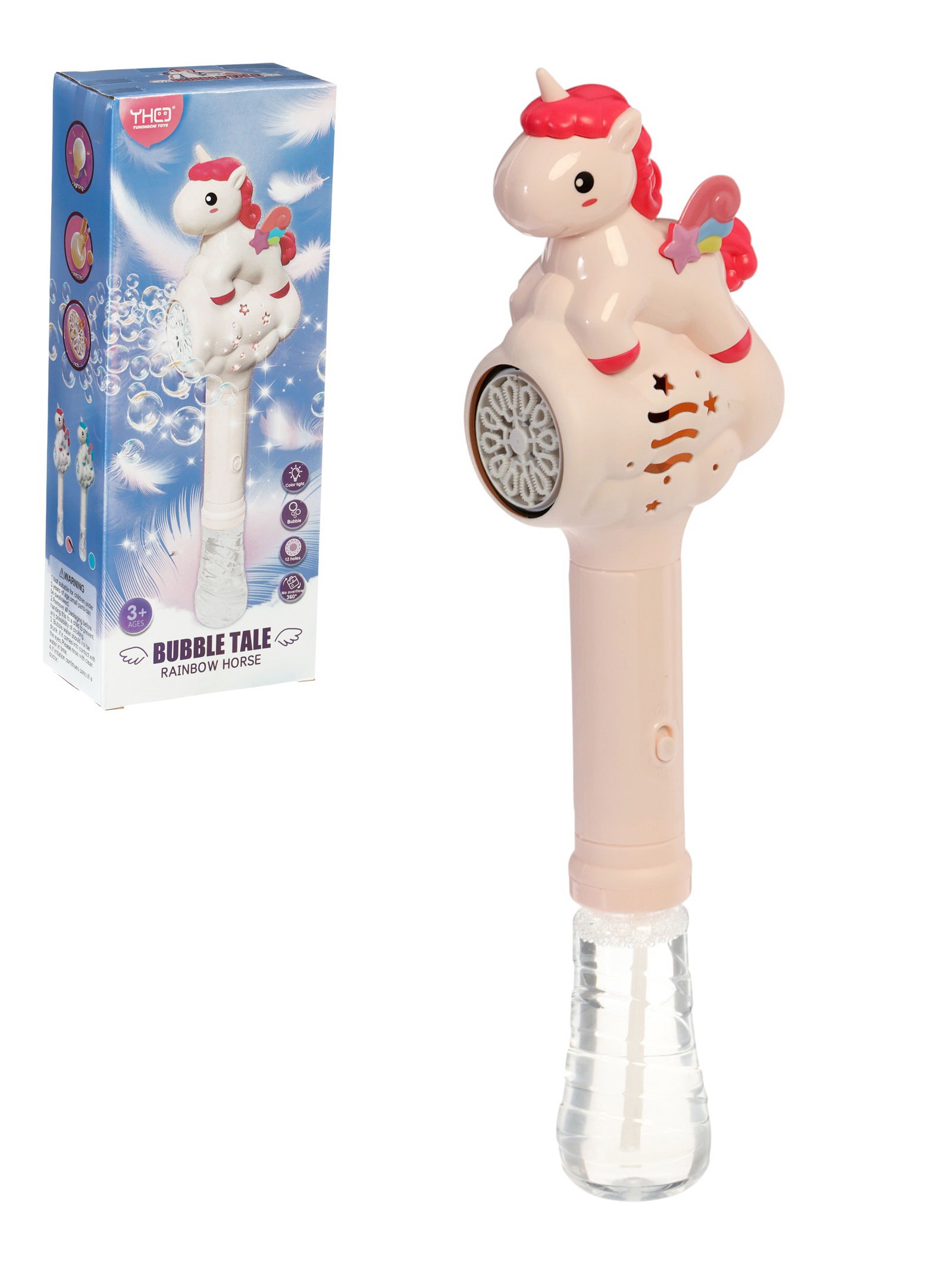 Генератор мыльных пузырей "Единорожка", световые эффекты, работает от батареек, 7x11.7x28.5 см., Китай