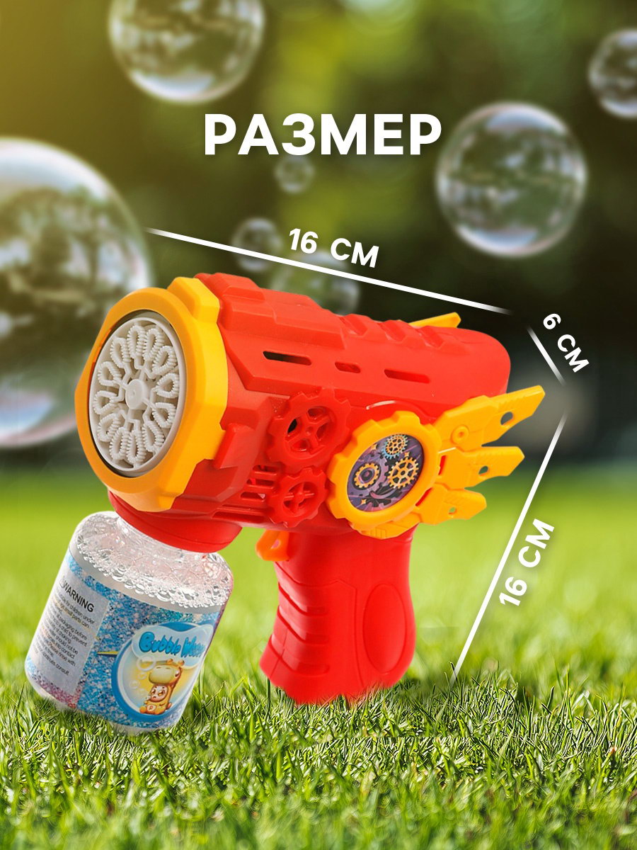Размер упаковки: 14 x 6.5 x 15 см. tnved: 9503008000 Вид: Генератор мыльных пузырей Возраст: От 3 лет Для кого: Для мальчика Батарейки в комплекте: Нет Запусти фейерверк из мыльных пузырей! Бластер для мыльных пузырей со световыми эффектами это мощный генератор веселья для активных игр. Стильный красный дизайн и автоматическая работа делают его идеальным для праздников и прогулок.