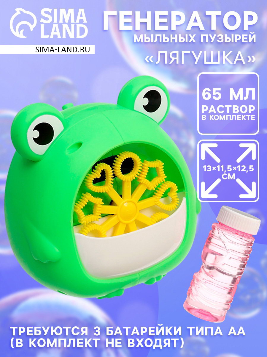 Генератор мыльных пузырей "Лягушка", работает от батареек, цвет зелёный, 11.5x13x12.5 см., Китай