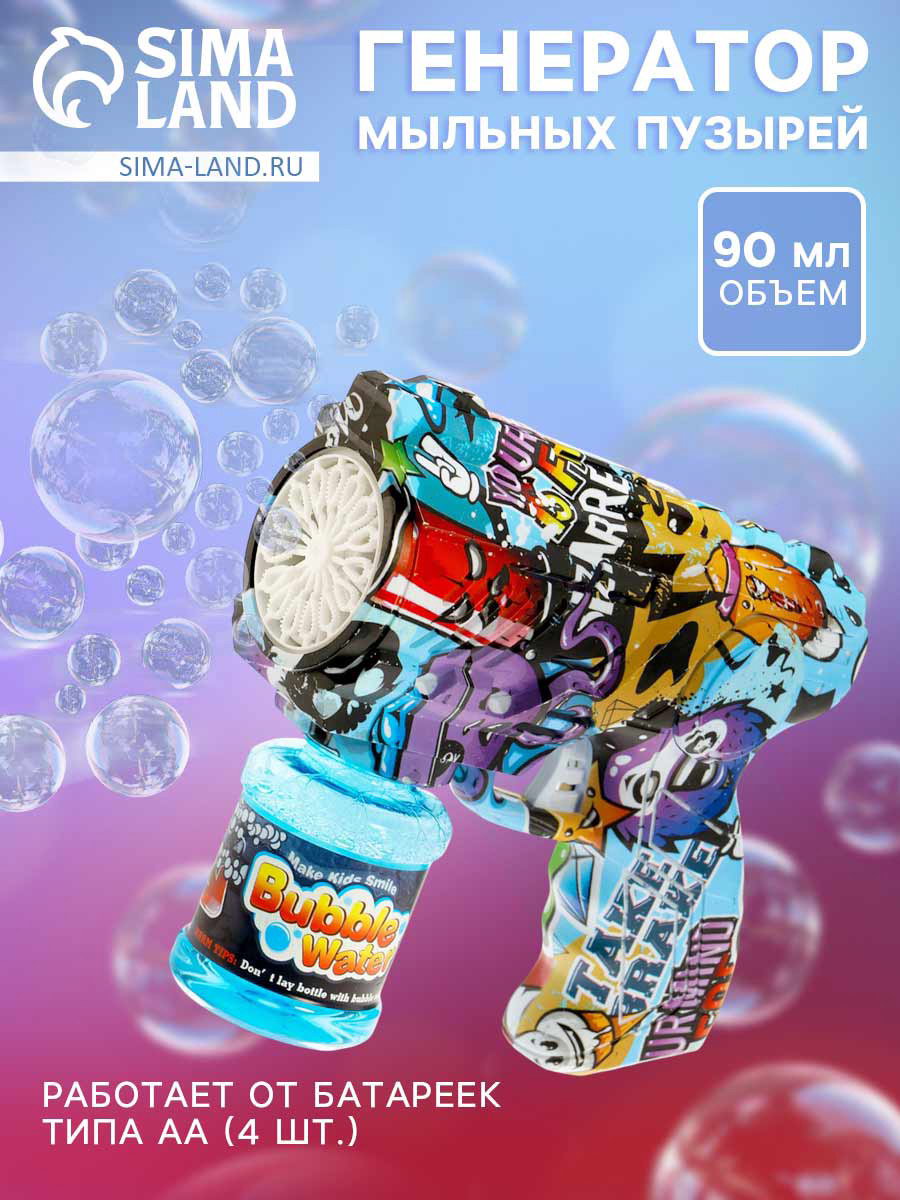 Генератор мыльных пузырей "Граффити", световые эффекты, работает от батареек, МИКС, 6.5x18.5x14.5 см., Китай
