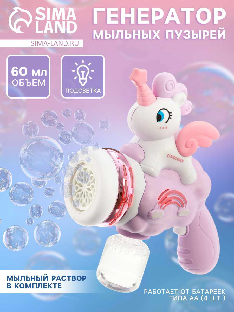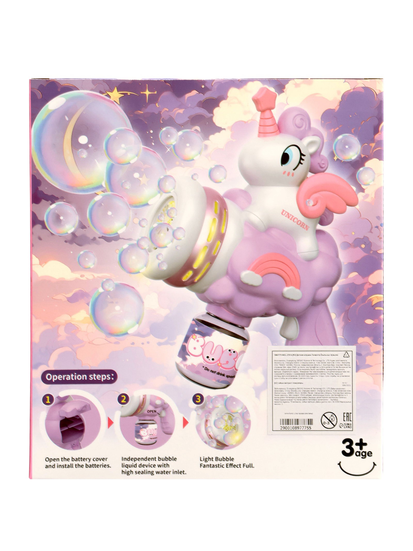 Генератор мыльных пузырей "Единорог на облачке", световые эффекты, работает от батареек, 8.5x18x20.5 см., Китай