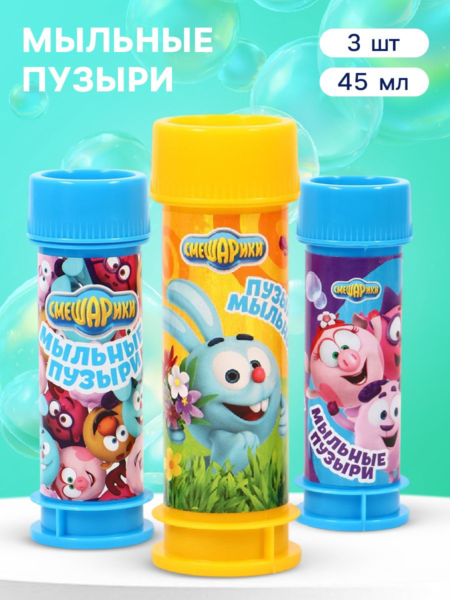 Набор мыльных пузырей 3 штуки, 45 мл, 45 мл., Смешарики, Россия