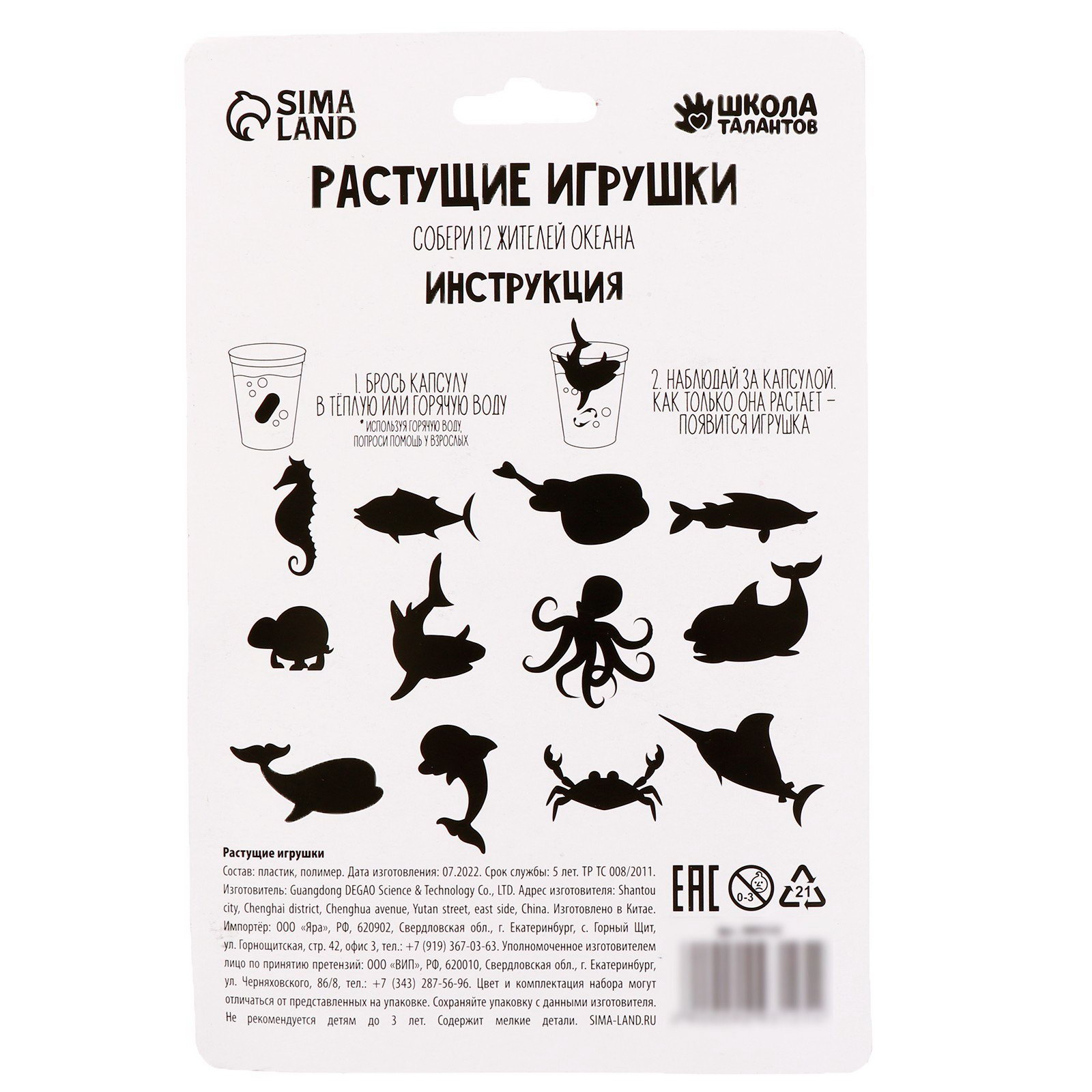 Растущие игрушки "Жители океана", 15x22.5x0.8 см., Школа талантов, Китай