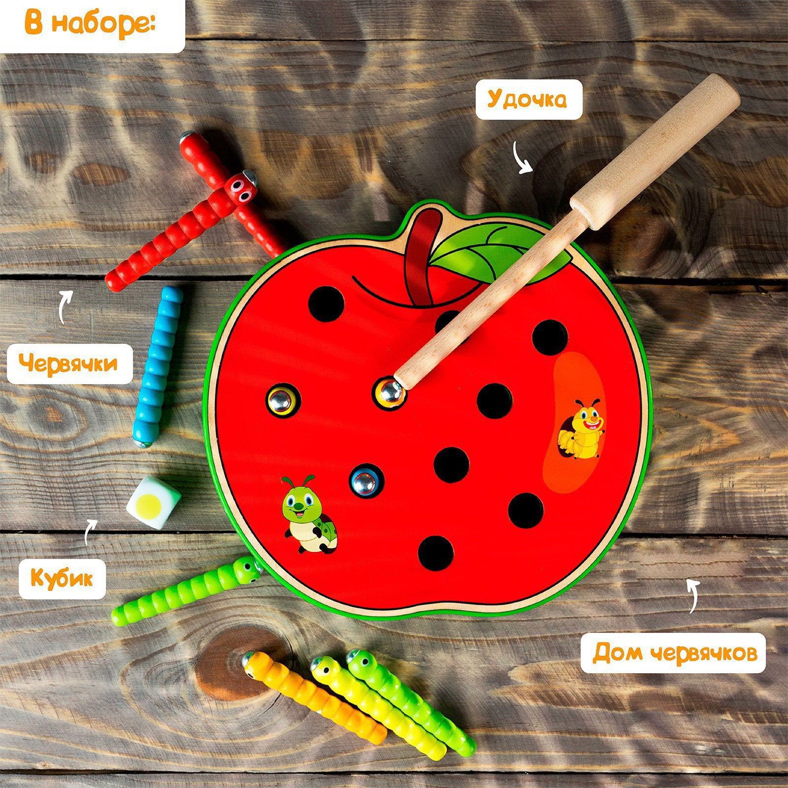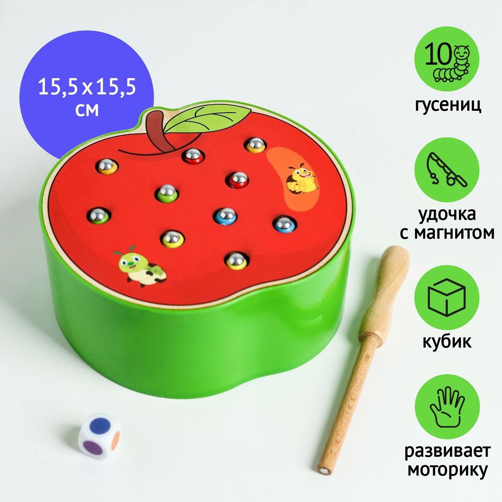 Рыбалка магнитная "Спелое яблочко", 7x15.5x15.5 см., Лесная мастерская, Китай