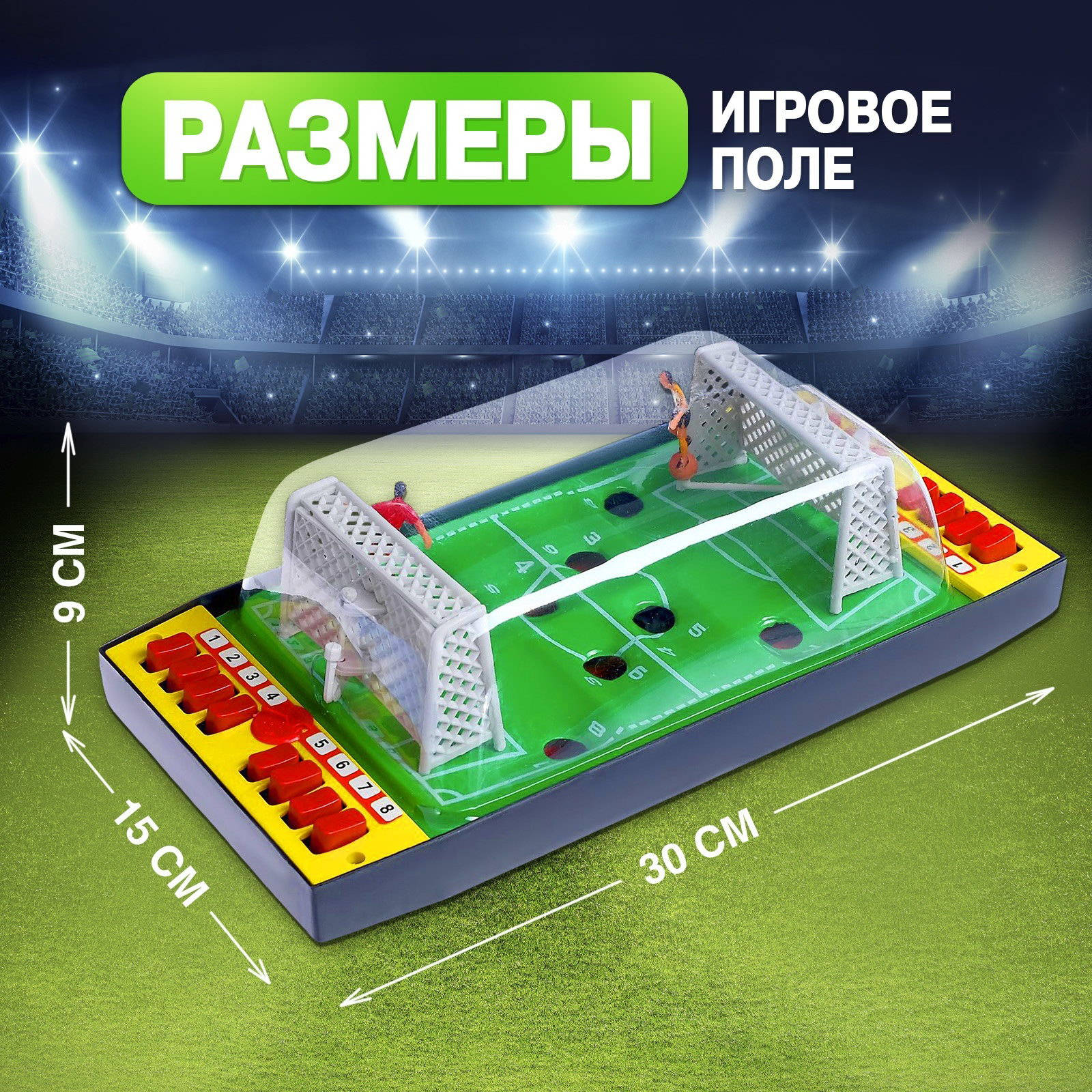 Количество игроков: 2, 2 игрока Жанр игры: 3D-Action, Спортивная Размер упаковки: 16 x 10.5 x 31 см. Вид: Футбол Вид игры: Футбол Для кого: Для мальчика tnved: 9504908000 Возраст: От 3 лет Размер игрового поля, см: 21 x 14 Хотите устроить футбольный матч, не выходя из дома? Настольный футбол "Побеждаем вместе" это отличный выбор для активного и весёлого времяпровождения! Что в комплекте: