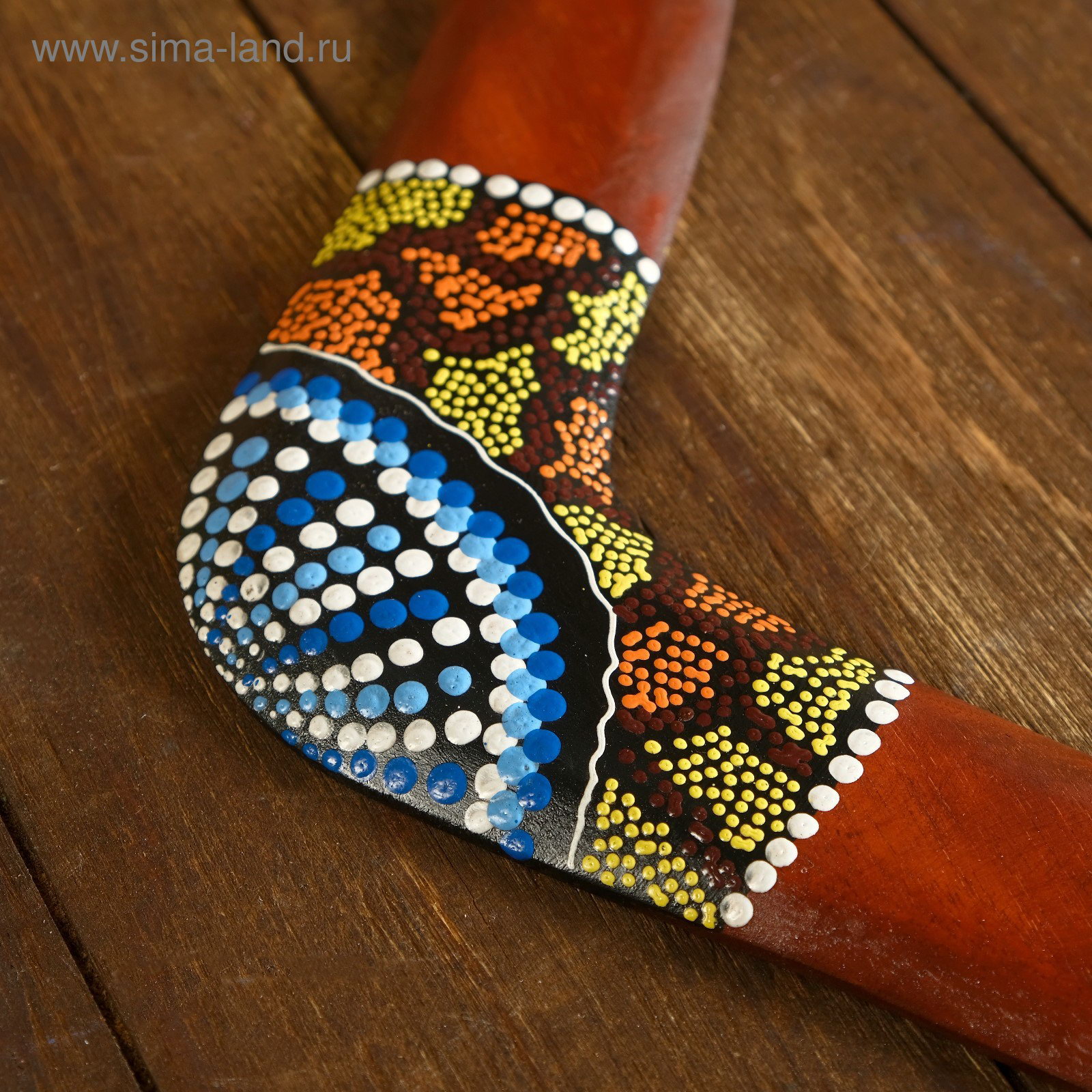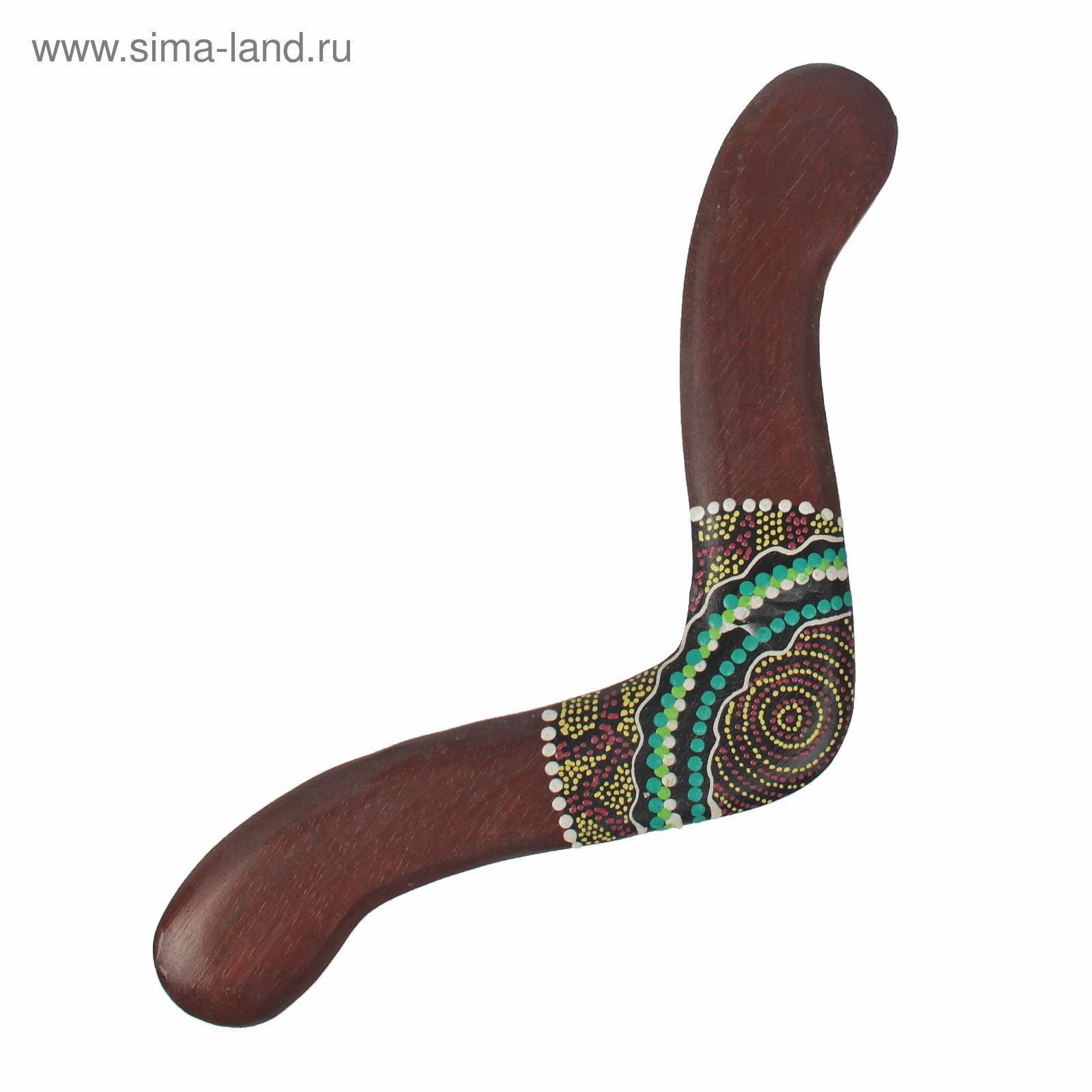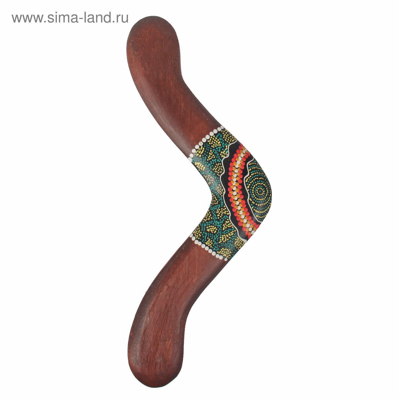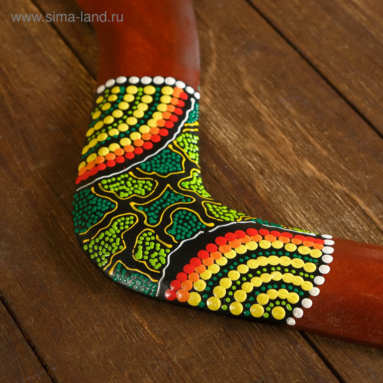 Сувенир "Бумеранг с точечной росписью" коричневый 40х7х1 см МИКС, 7x1x40 см., Индонезия