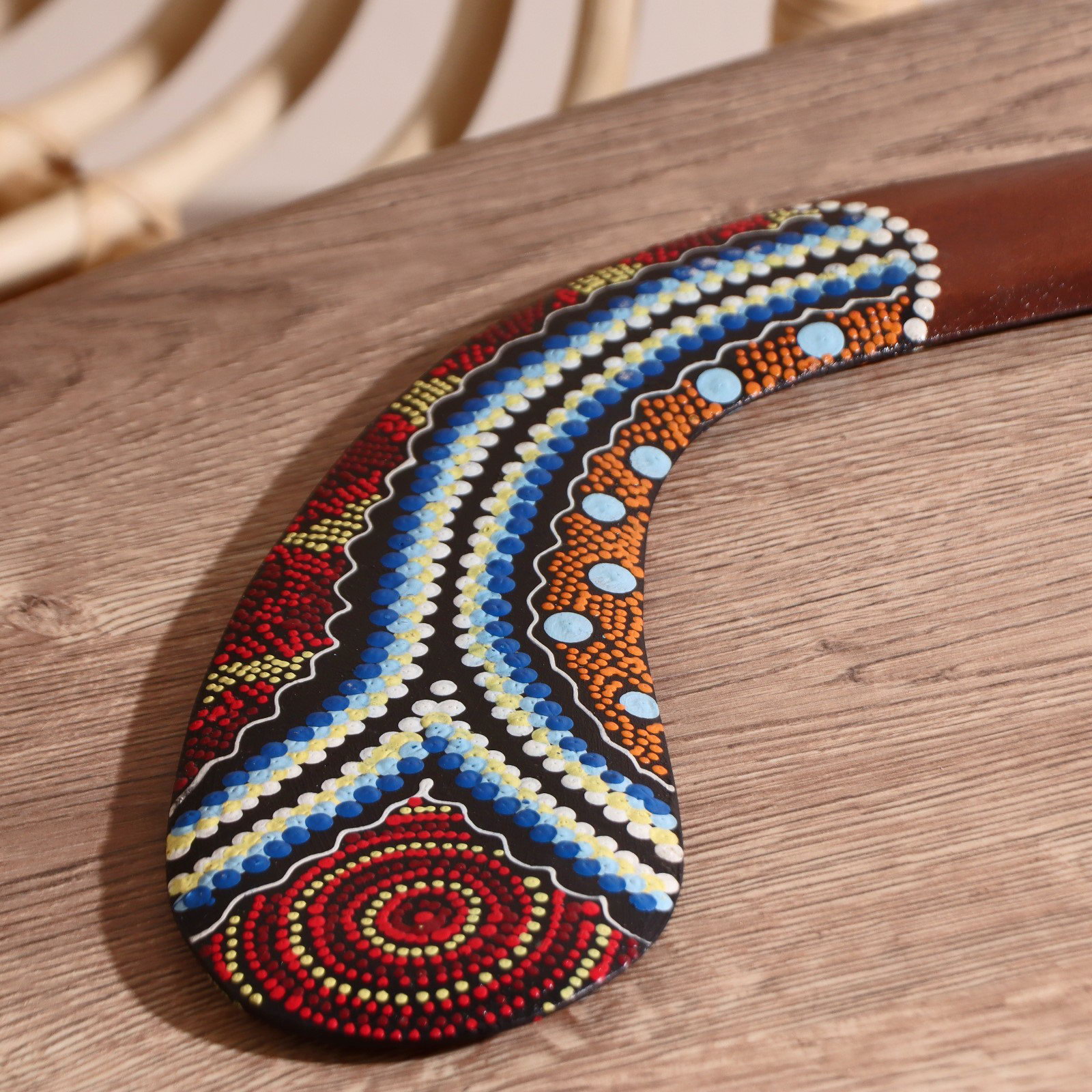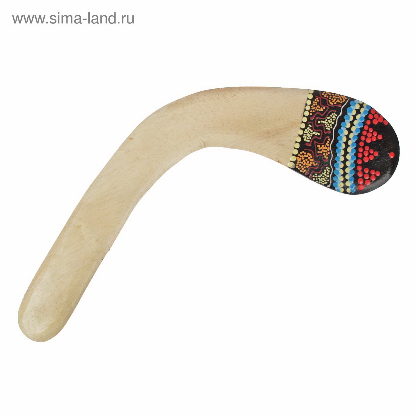 Сувенир "Бумеранг с точечной росписью" цвет натуральный 38х9х1 см, МИКС, 9x1x38 см., Индонезия