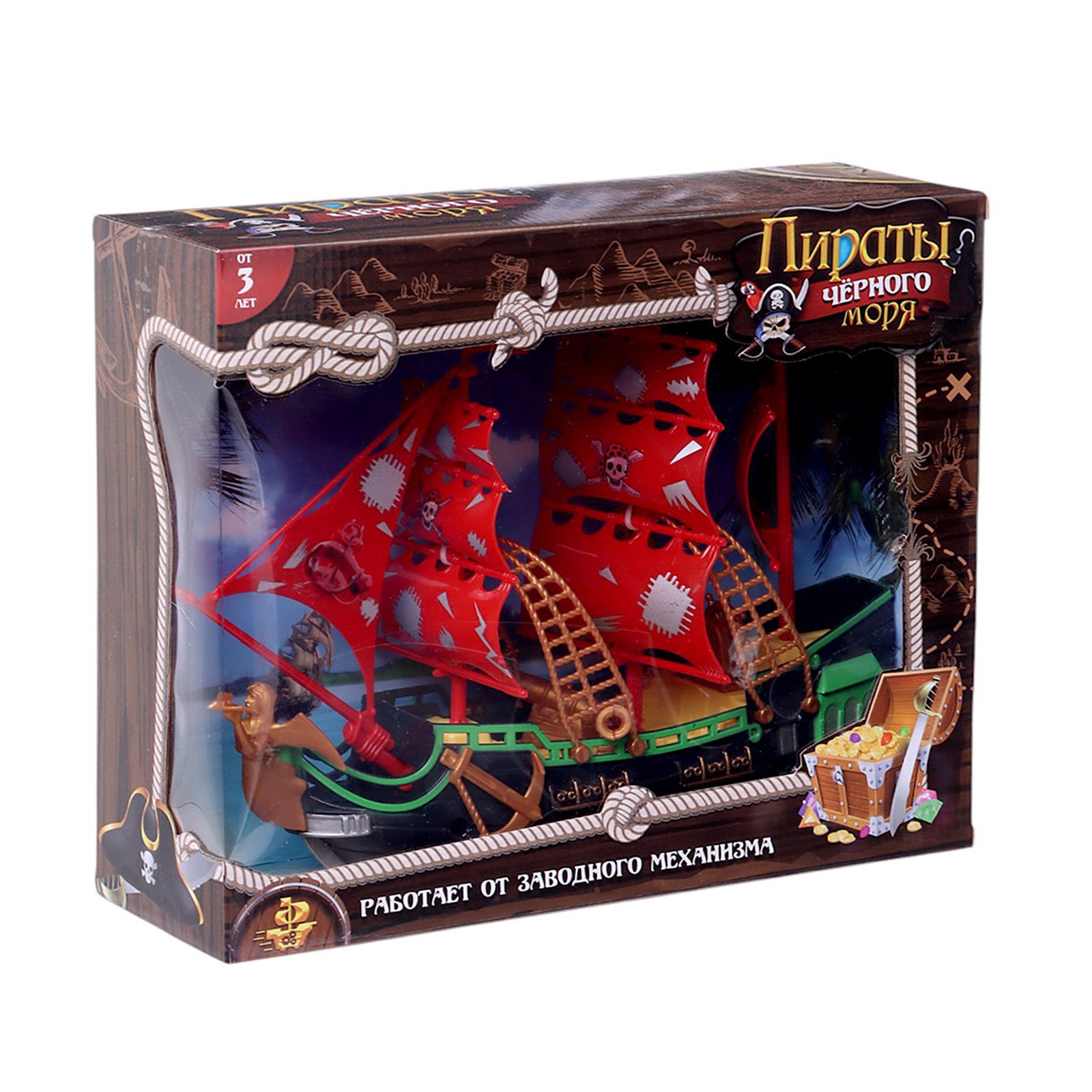 Пиратский корабль "Пираты черного моря", работает от заводного механизма, МИКС, 8.5x27x21 см., WOOW TOYS, Китай