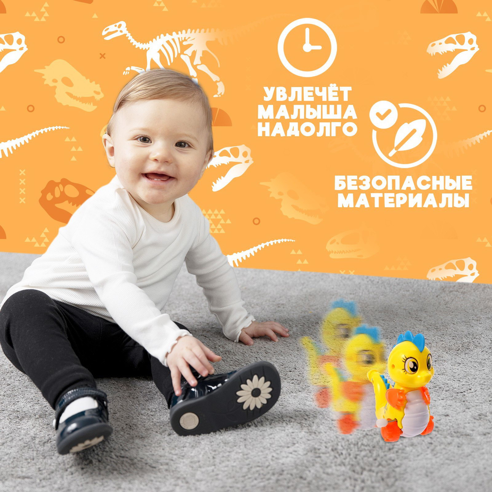 Игра с заводным драконом знакомит детей с основами механики. Ребёнок устанавливает связь между количеством оборотов ключа и продолжительностью движения. Игрушка стимулирует ползание и активные игры для детей от 3 лет. | ||