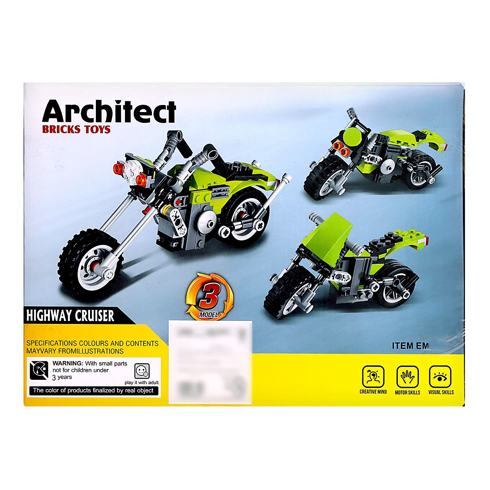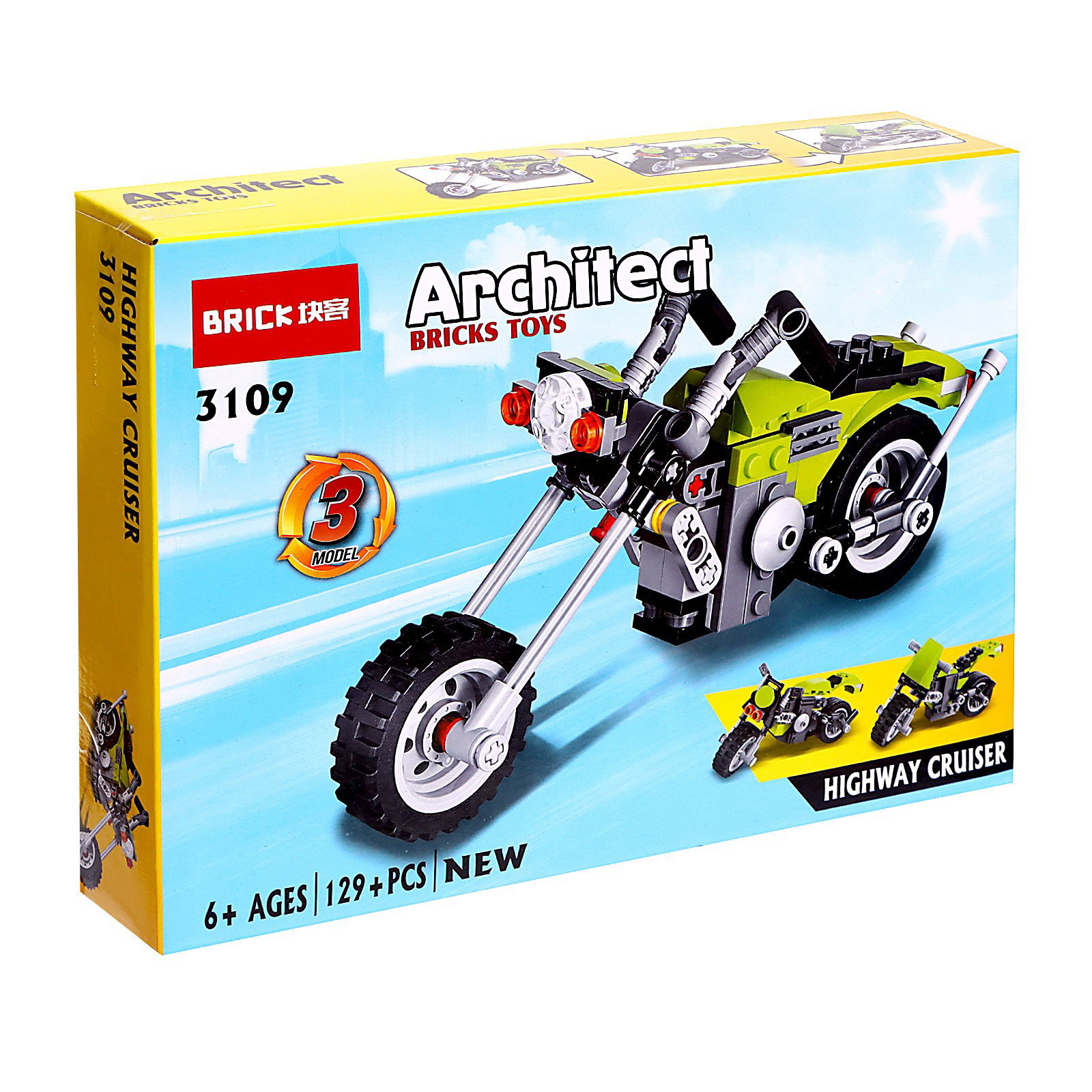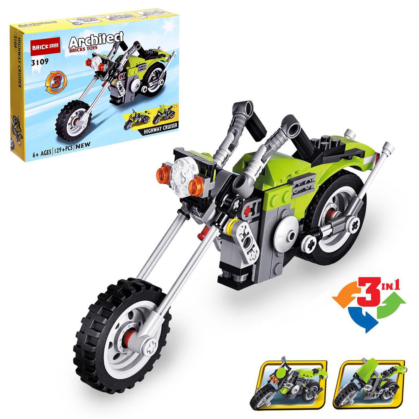 Конструктор блочный "Мотоцикл", 3 в 1, 129 деталей, 6+, 5x24x17 см., Brick, Китай