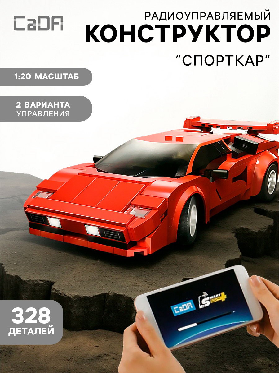 Конструктор "Спорткар", радиоуправляемый, 1:20, 2 варианта управления, 328 деталей, 6x30x21 см., CADA, Китай