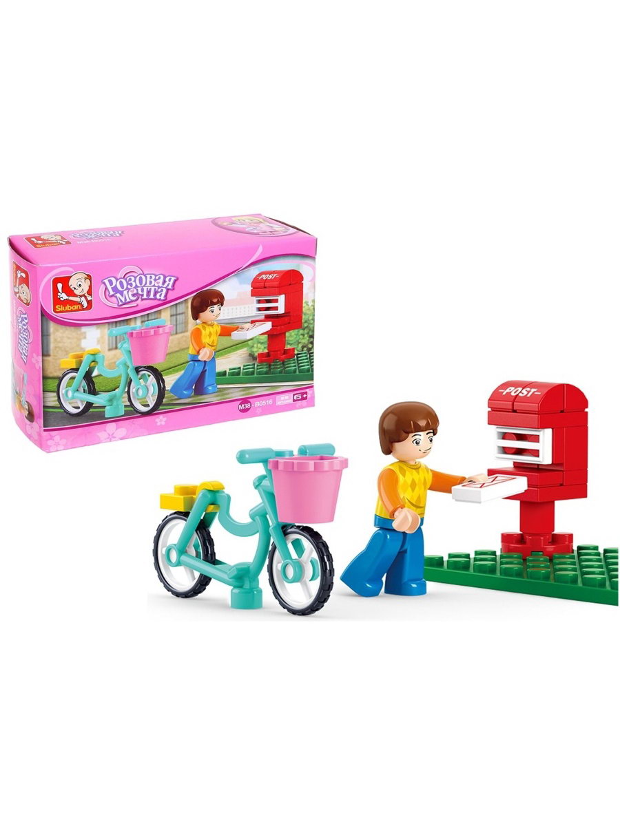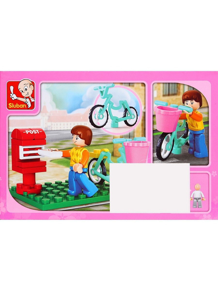 Конструктор "Розовая мечта: курьер на велосипеде", 29 деталей, 4.5x14x9.4 см., Sluban, Китай