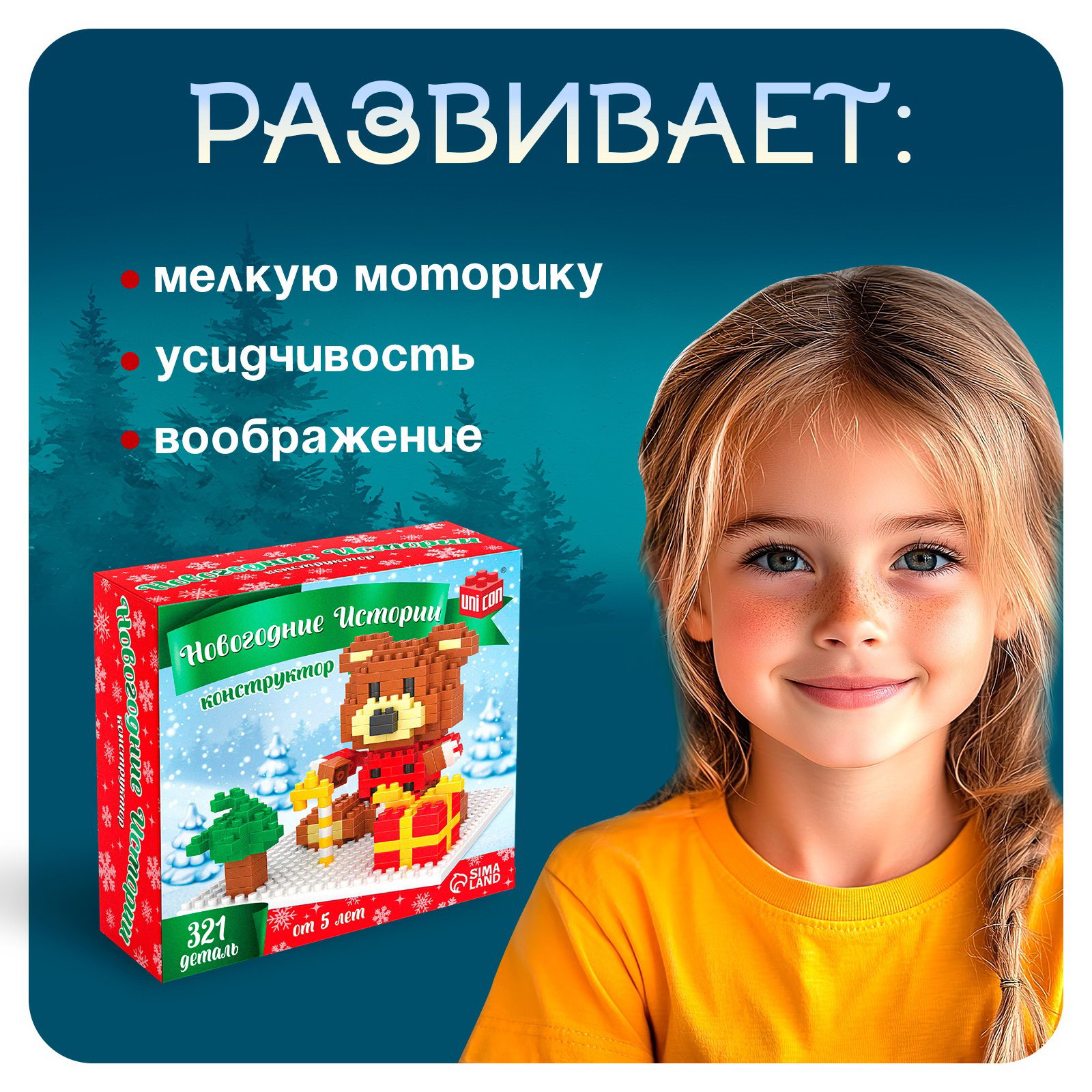 Конструктор "Новогодние Истории. Мишка", 321 деталь, 4.5x11x11 см., UNICON, Китай