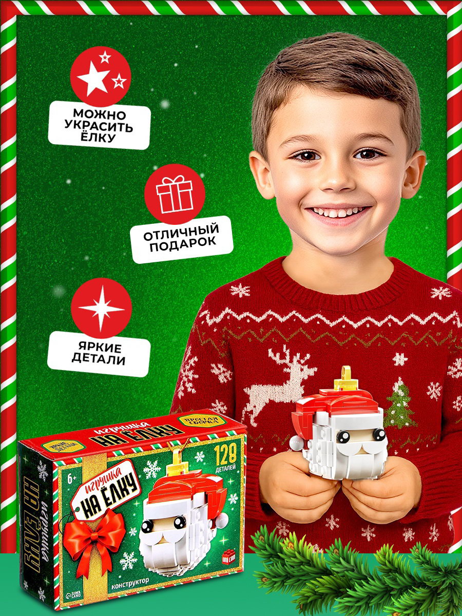 Конструктор новогодний "Игрушка на ёлку. Дед Мороз", 128 деталей, 6+, UNICON, Китай
