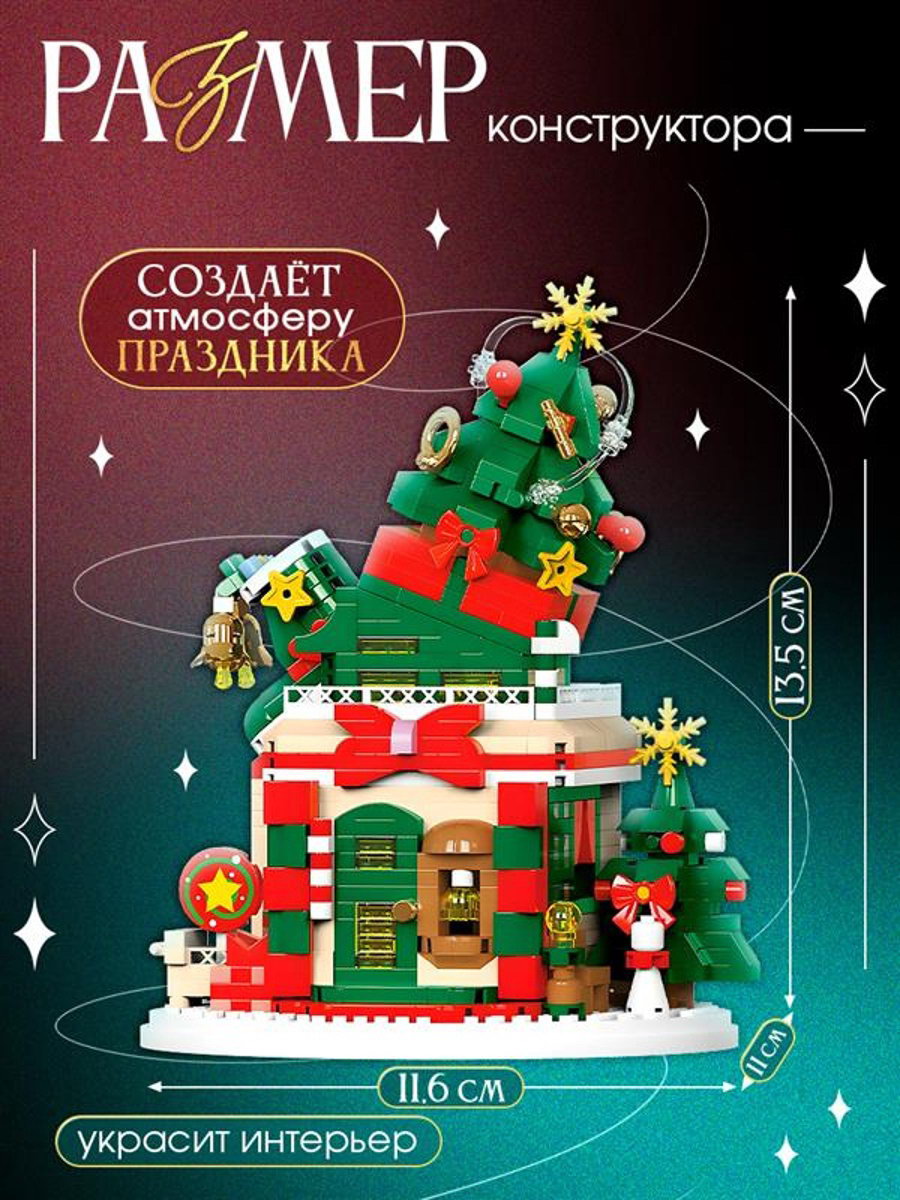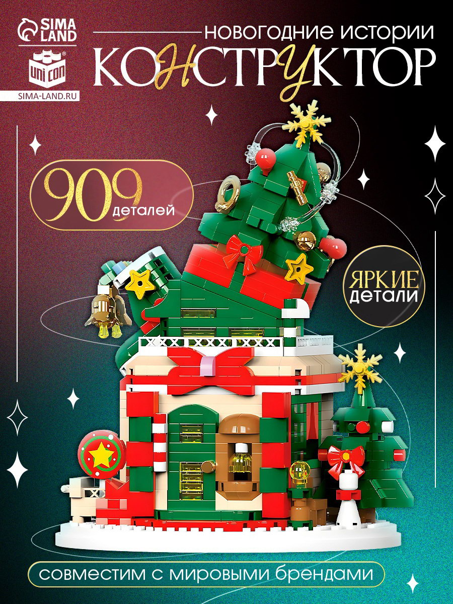Конструктор "Новогодние истории. Ёлочка", с гирляндой, 909 деталей, 11x11.6x13.5 см., UNICON, Китай