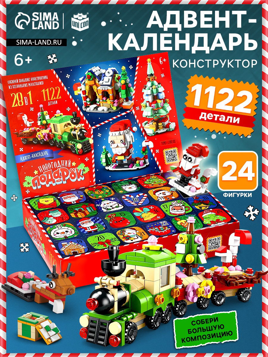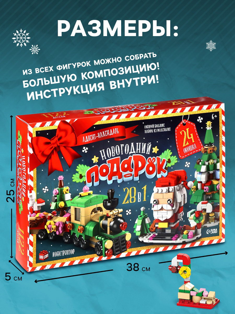 Адвент - календарь "Новогодний подарок", 28 в 1, 7x38x26 см., UNICON, Китай