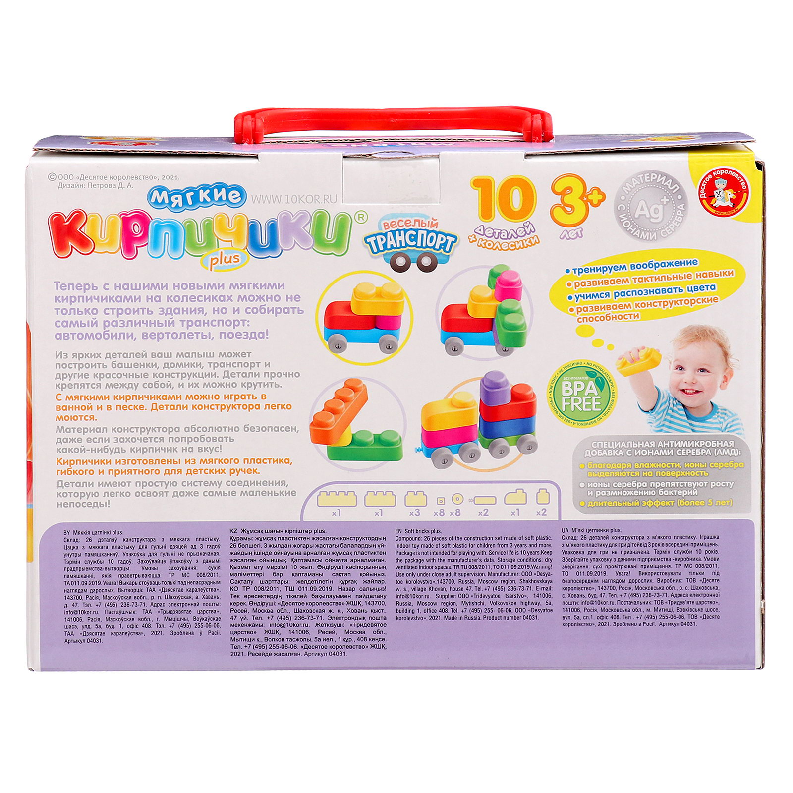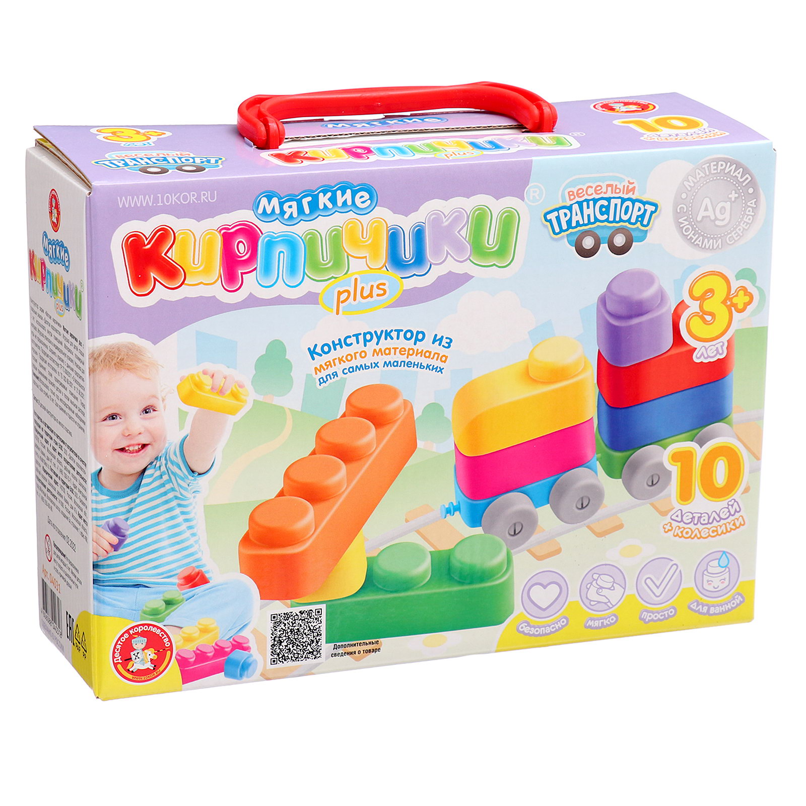 Конструктор "Мягкие кирпичики. Весёлый транспорт", 10 деталей, колёсики, Десятое Королевство, Россия