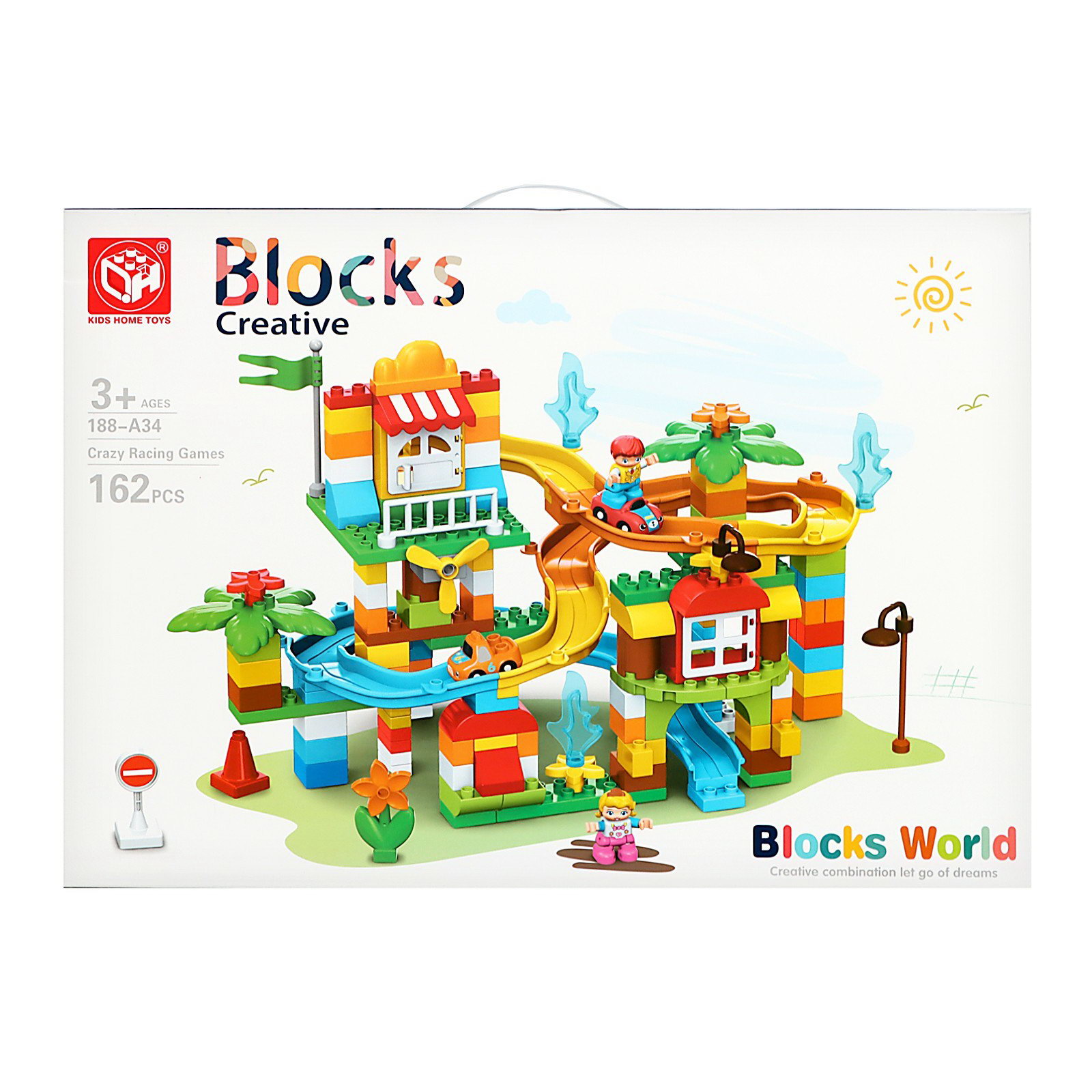 Конструктор "Забавные горки", 2 варианта сборки, 162 детали, 12.3x55.6x39.5 см., KIDS HOME TOYS, Китай