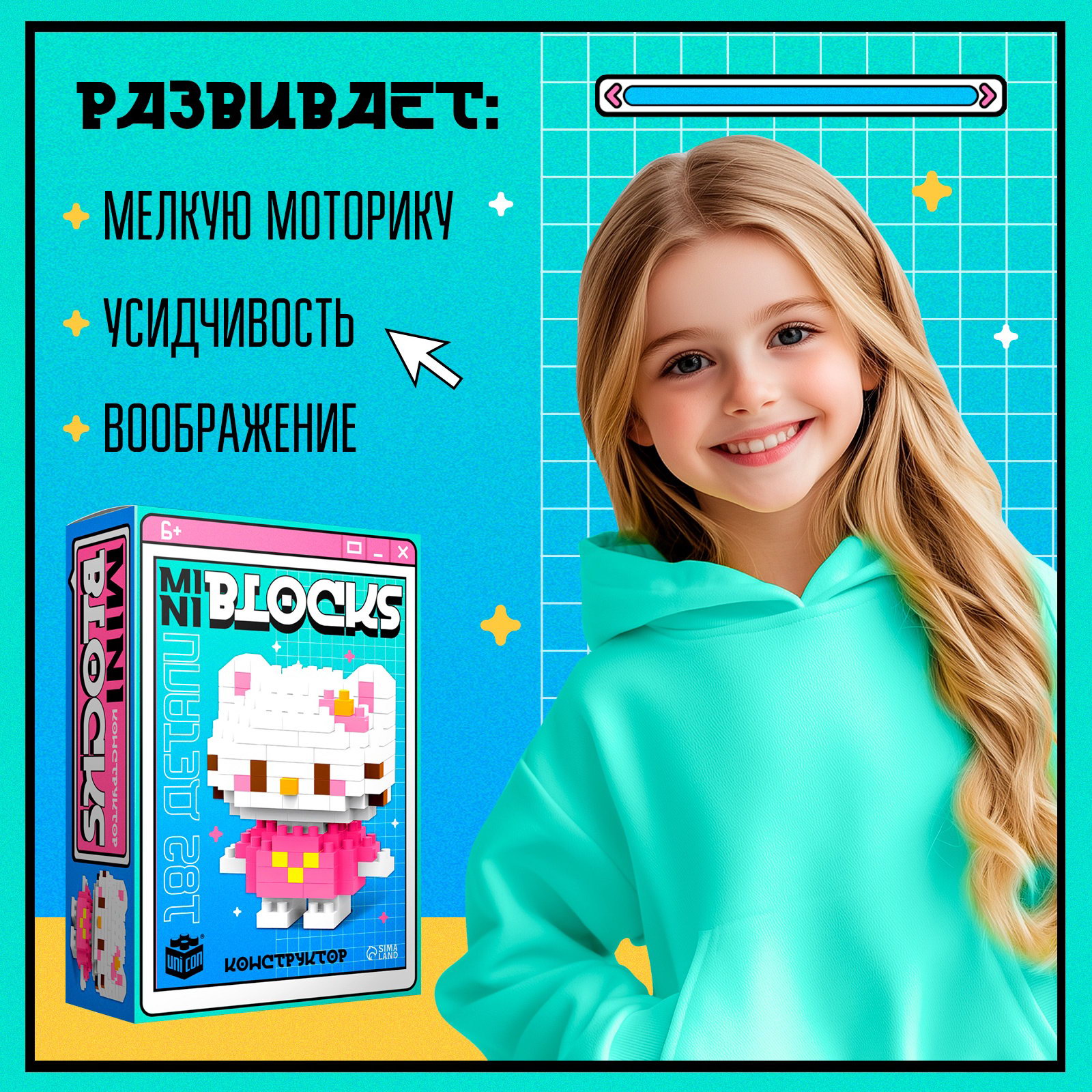 Конструктор "Mini Blocks. Котик", 182 детали, 7.8x4x10.9 см., UNICON, Китай