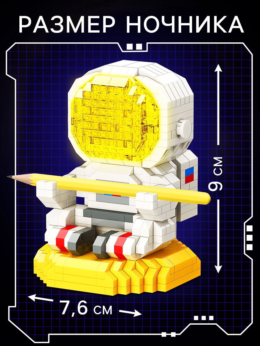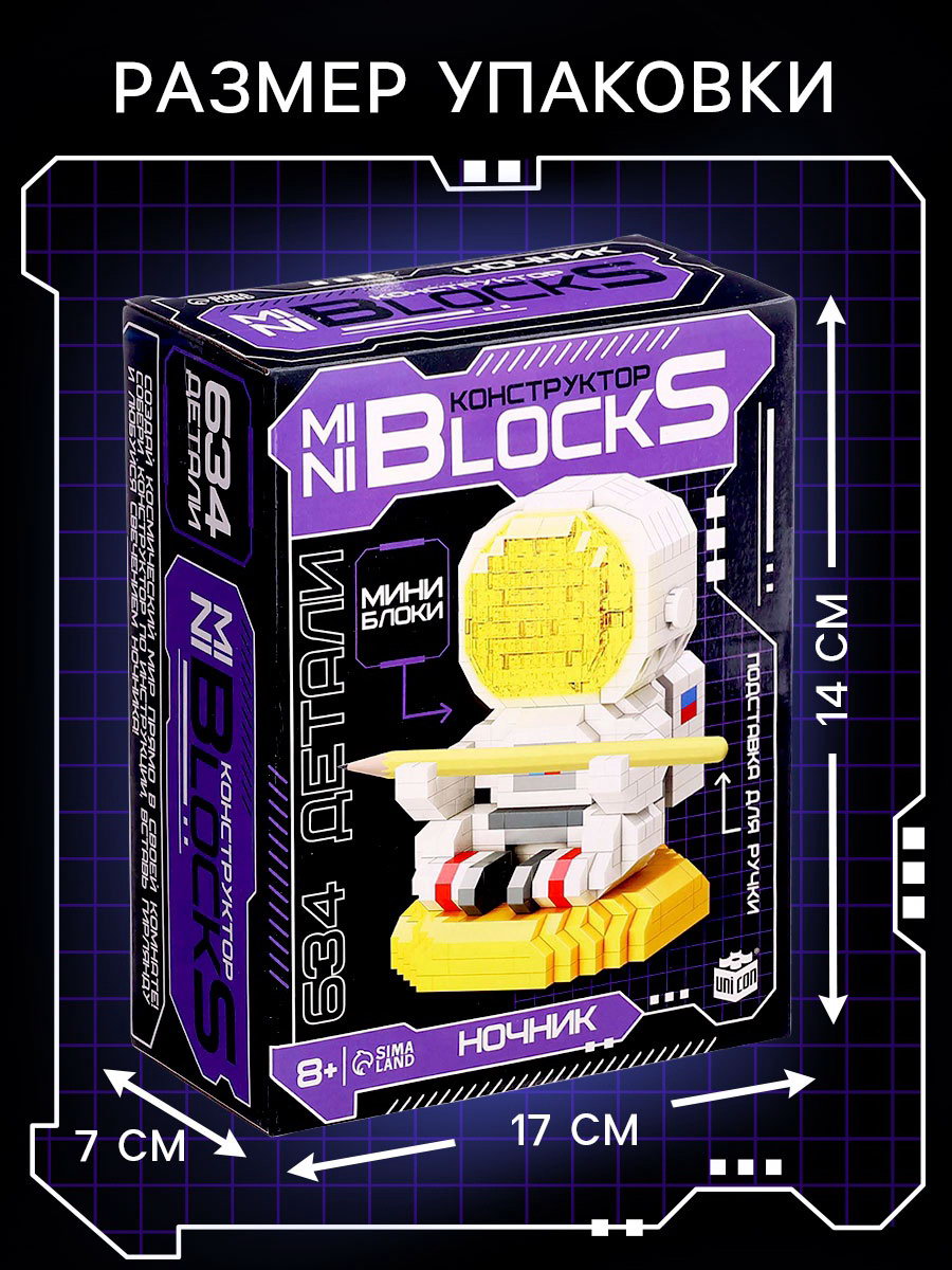 Конструктор-ночник Mini Blocks, "Космонавт", 634 детали, 14x7x18 см., UNICON, Китай