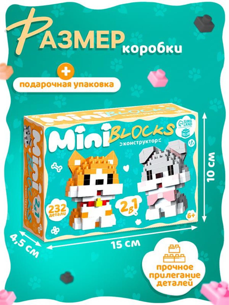 Конструктор "Mini Blocks. Собачки", 232 детали, 4.5x10x15 см., UNICON, Китай