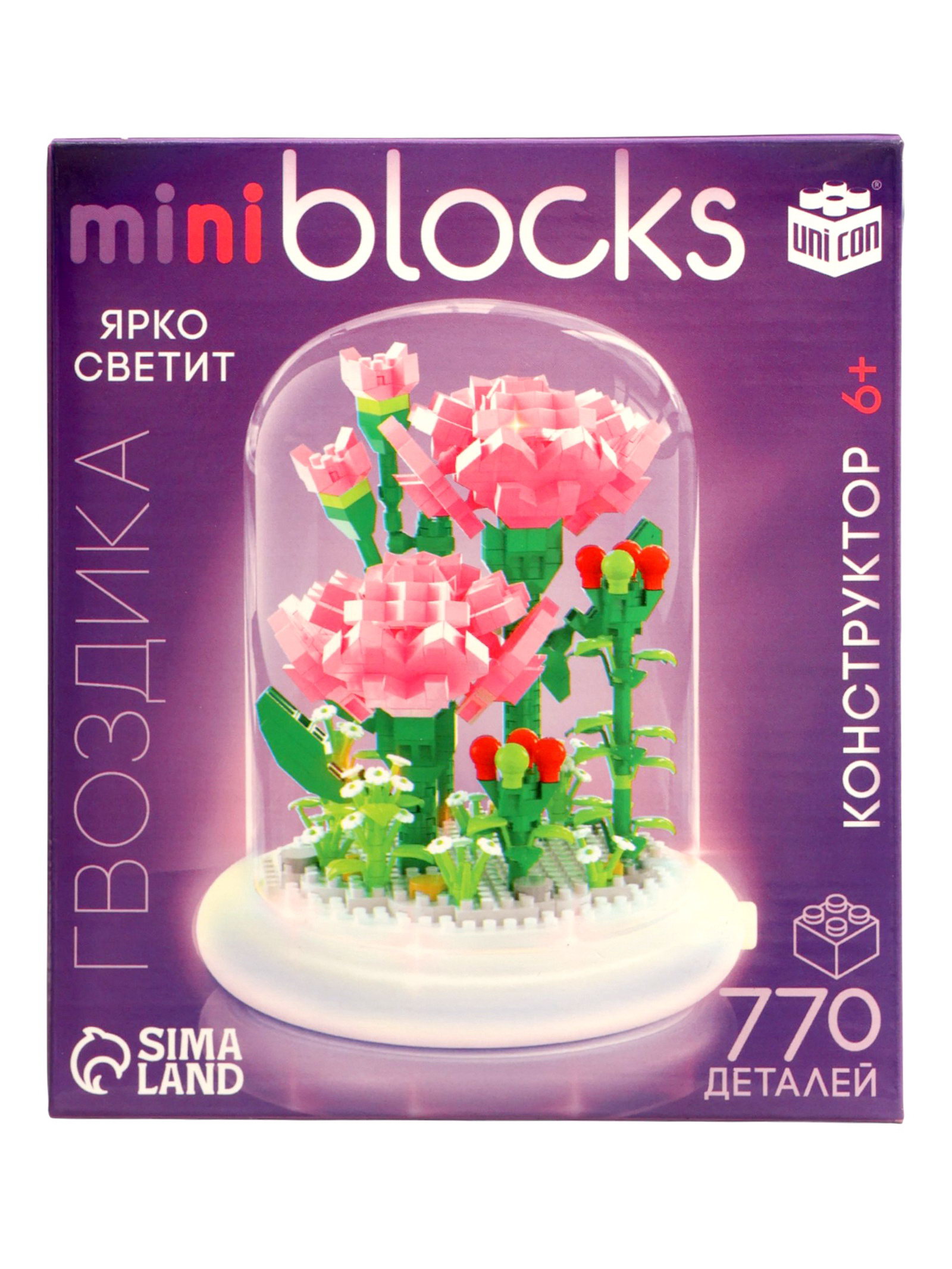 Конструктор Mini Blocks Гвоздика 770 деталей, свет, 16.6x14.5x14 см., UNICON, Китай