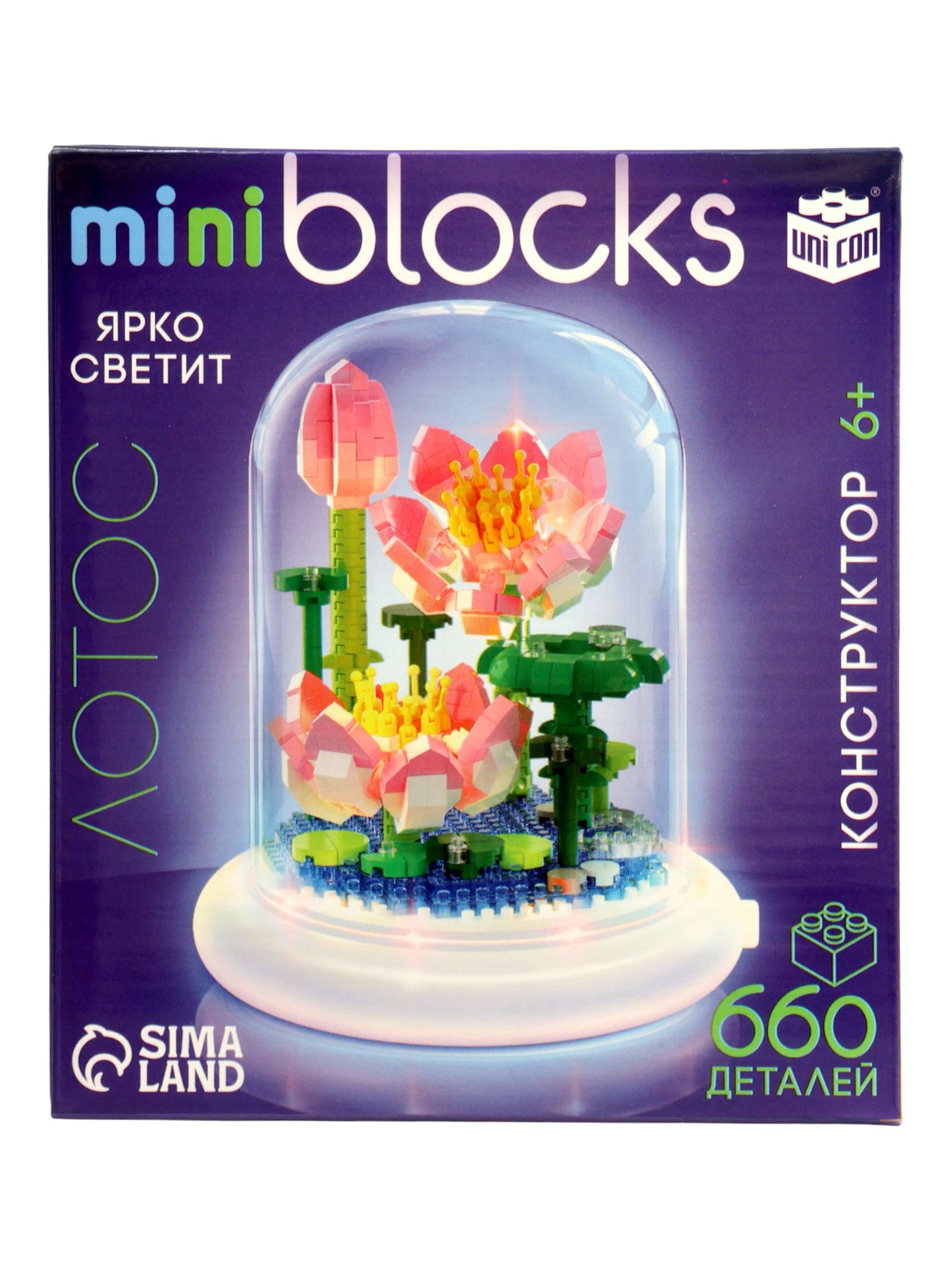 Конструктор Mini Blocks Лотос 660 деталей, свет, 16.6x14.5x14 см., UNICON, Китай
