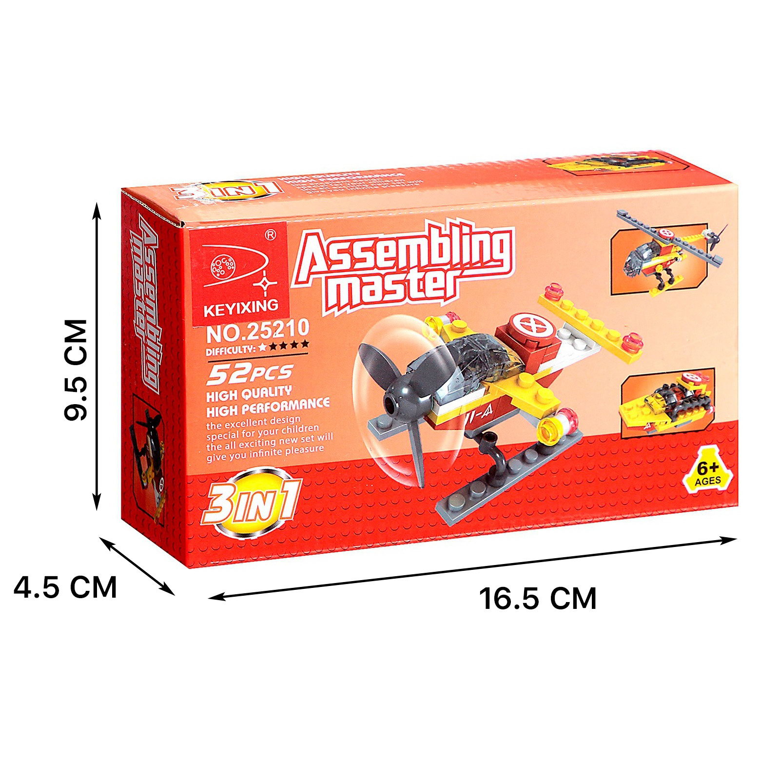 Конструктор "Воздушный транспорт", 3 варианта сборки, 52 детали, 4.5x16.5x9.5 см., KEYIXING, Китай