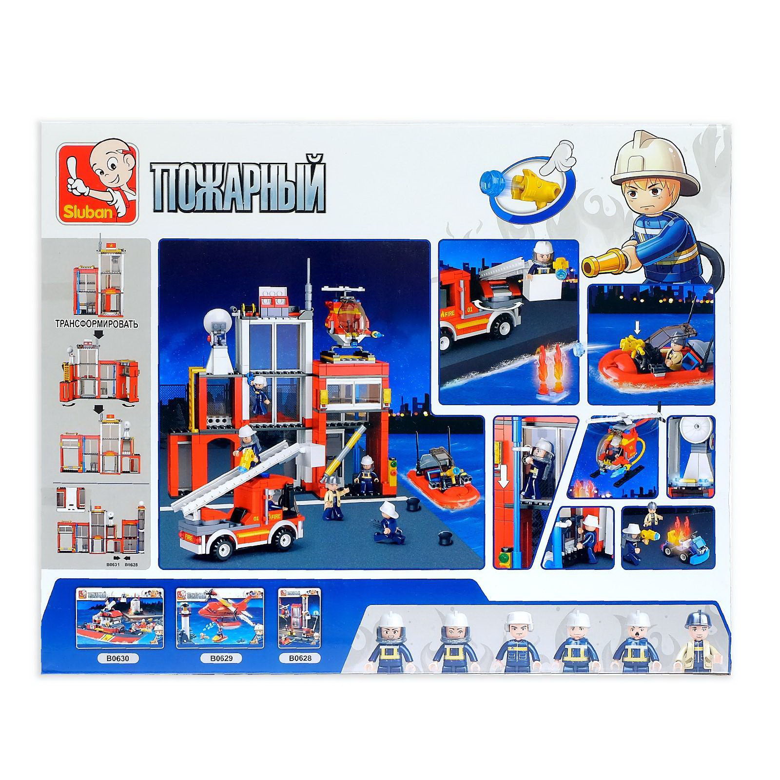 Конструктор "Пожарная станция", 612 деталей, 38x47.5x8 см., Sluban, Китай