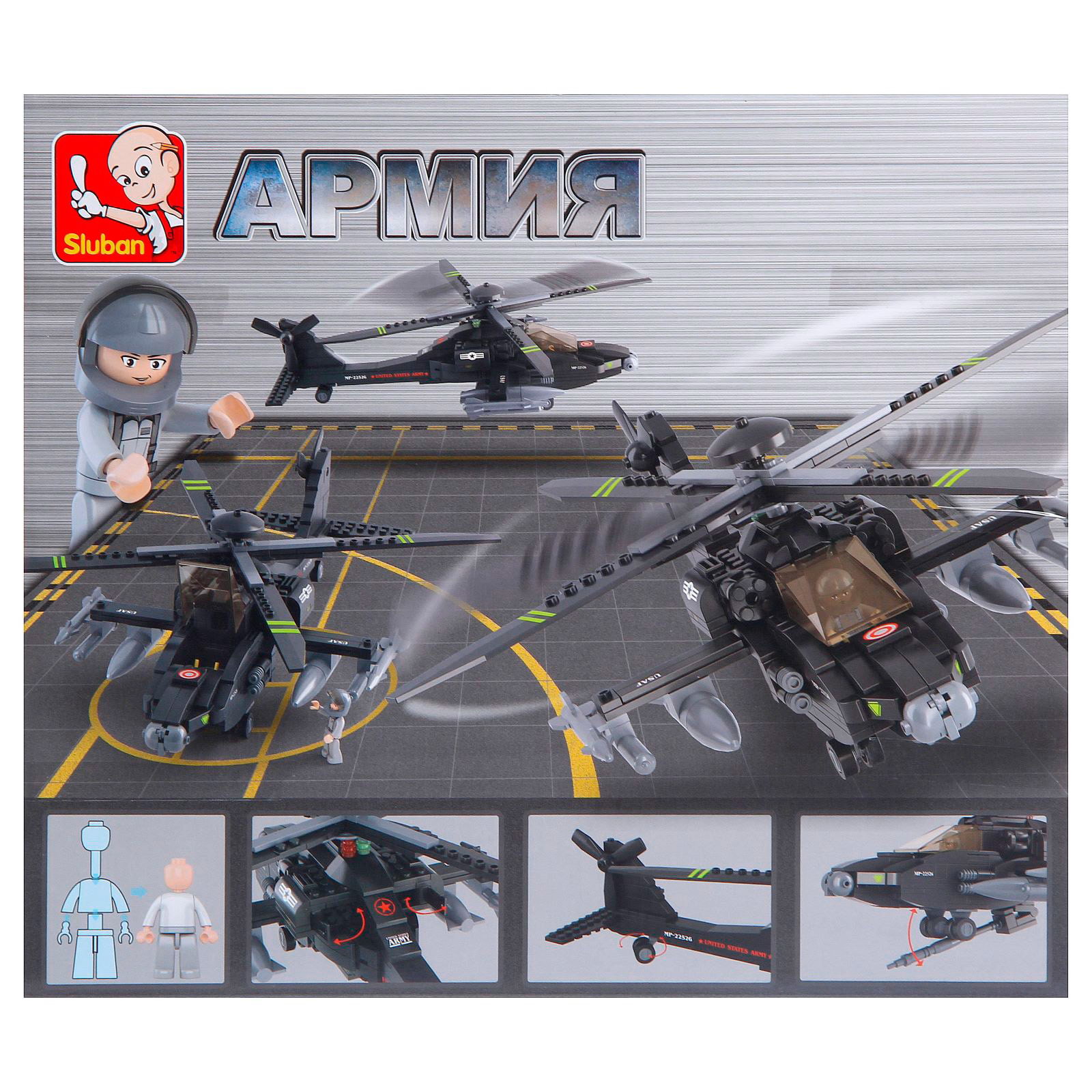 Конструктор "Штурмовой вертолёт", 293 детали, 28.5x33x6.7 см., Sluban, Китай