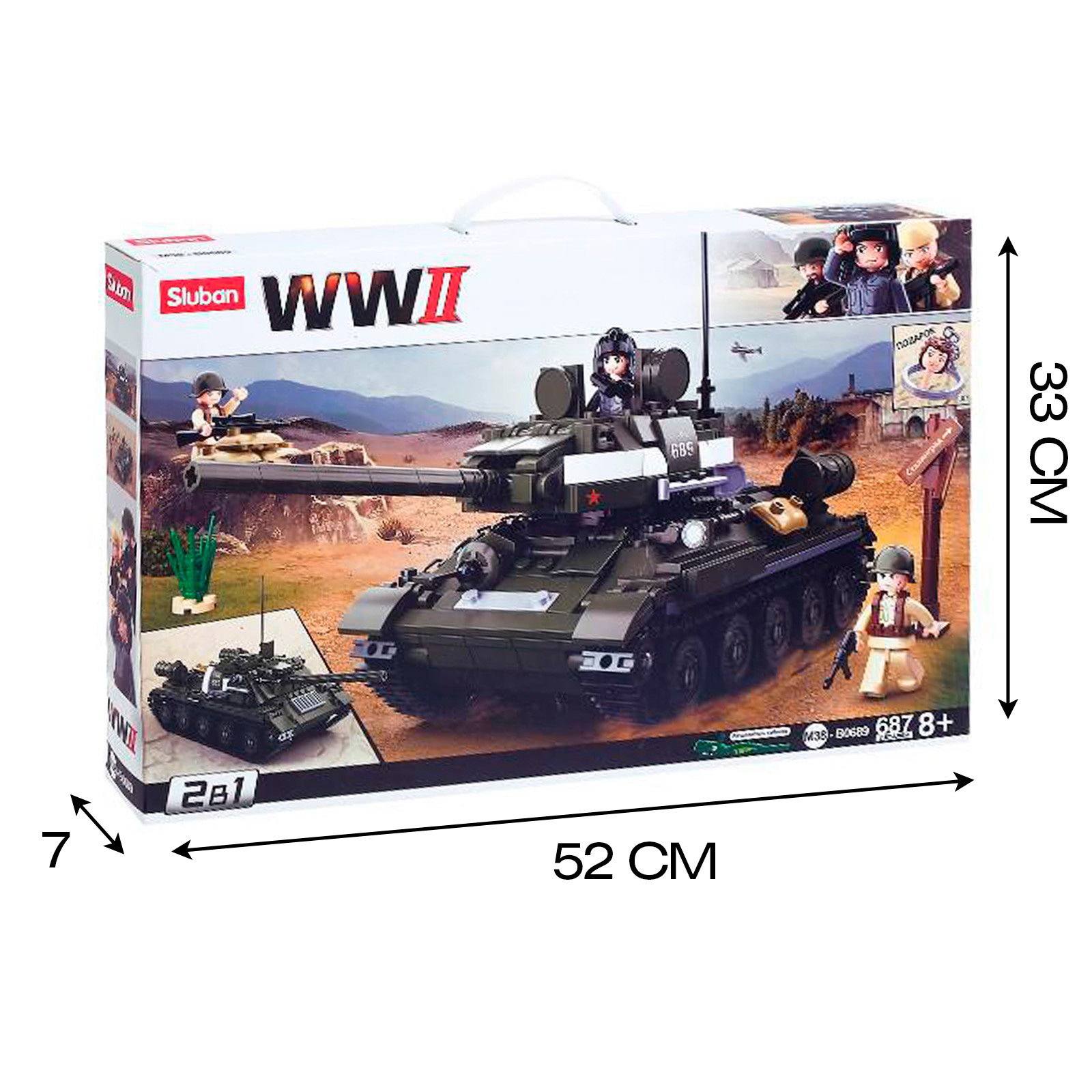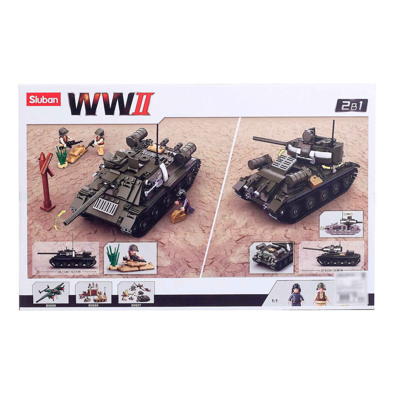 Конструктор Армия ВОВ "Боевой танк", 2 варианта сборки, 687 деталей, 33x52x7 см., Sluban, Китай