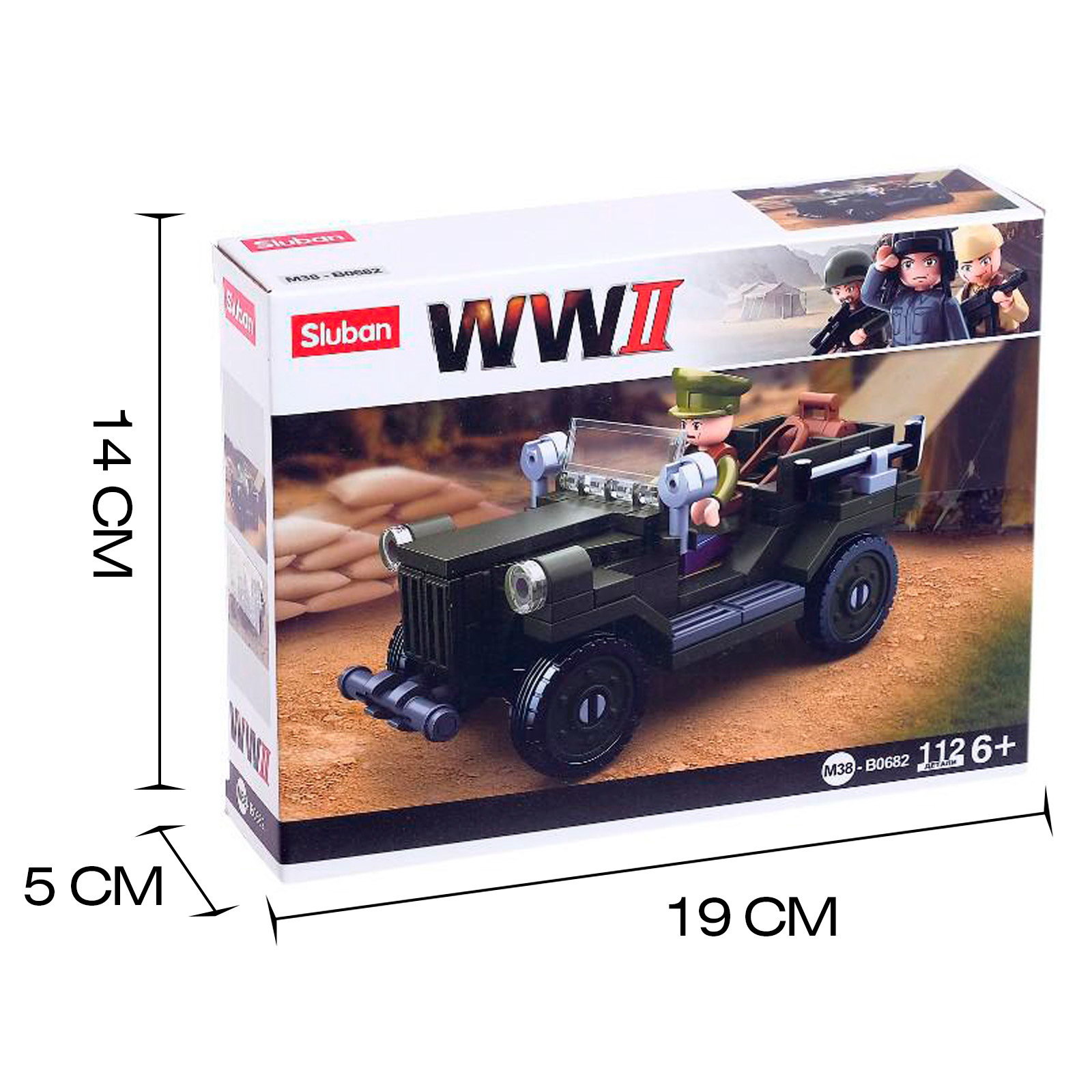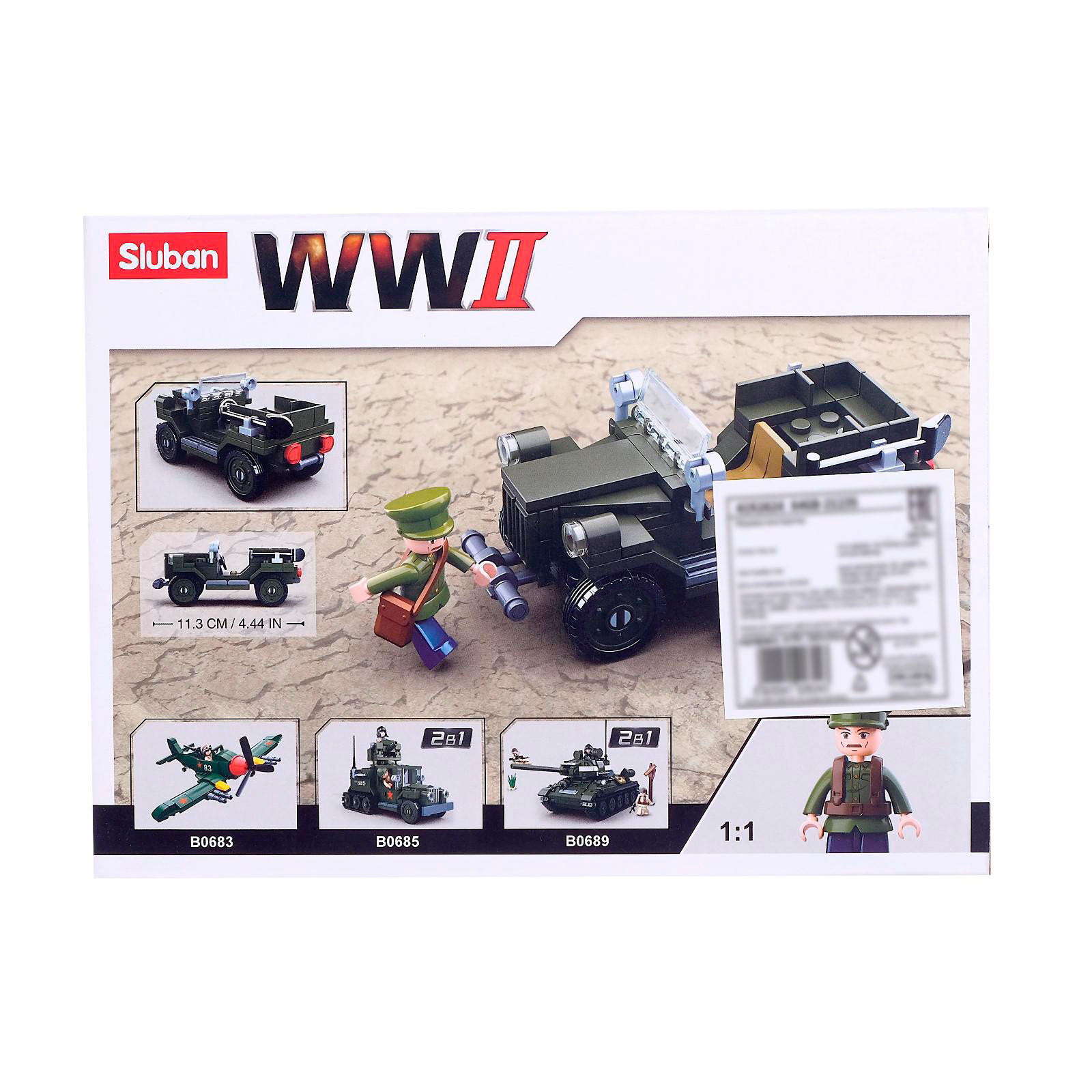 Конструктор Армия ВОВ "Военный джип", 112 деталей, 14.1x19x4.5 см., Sluban, Китай