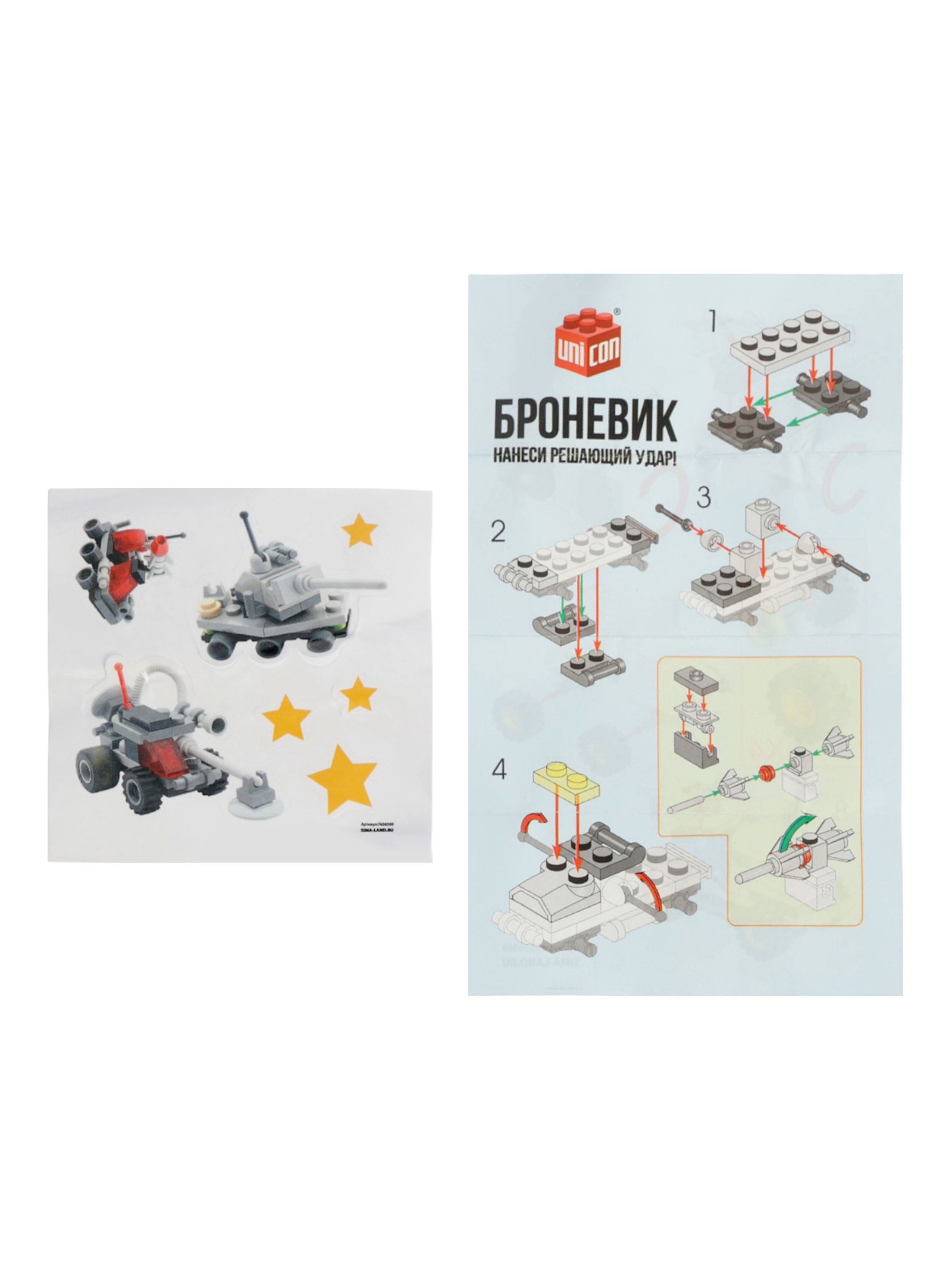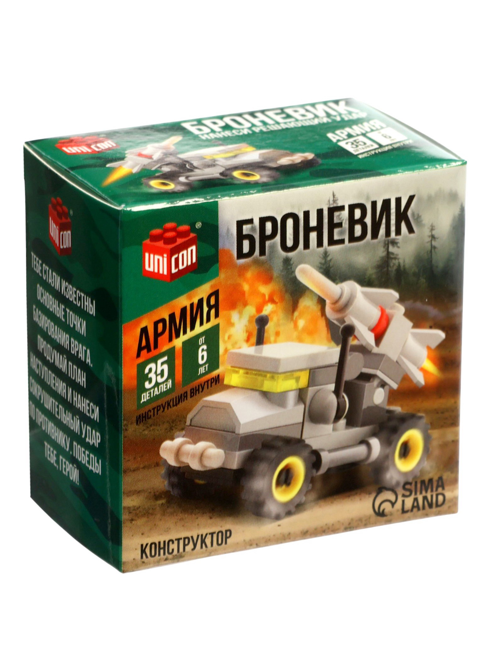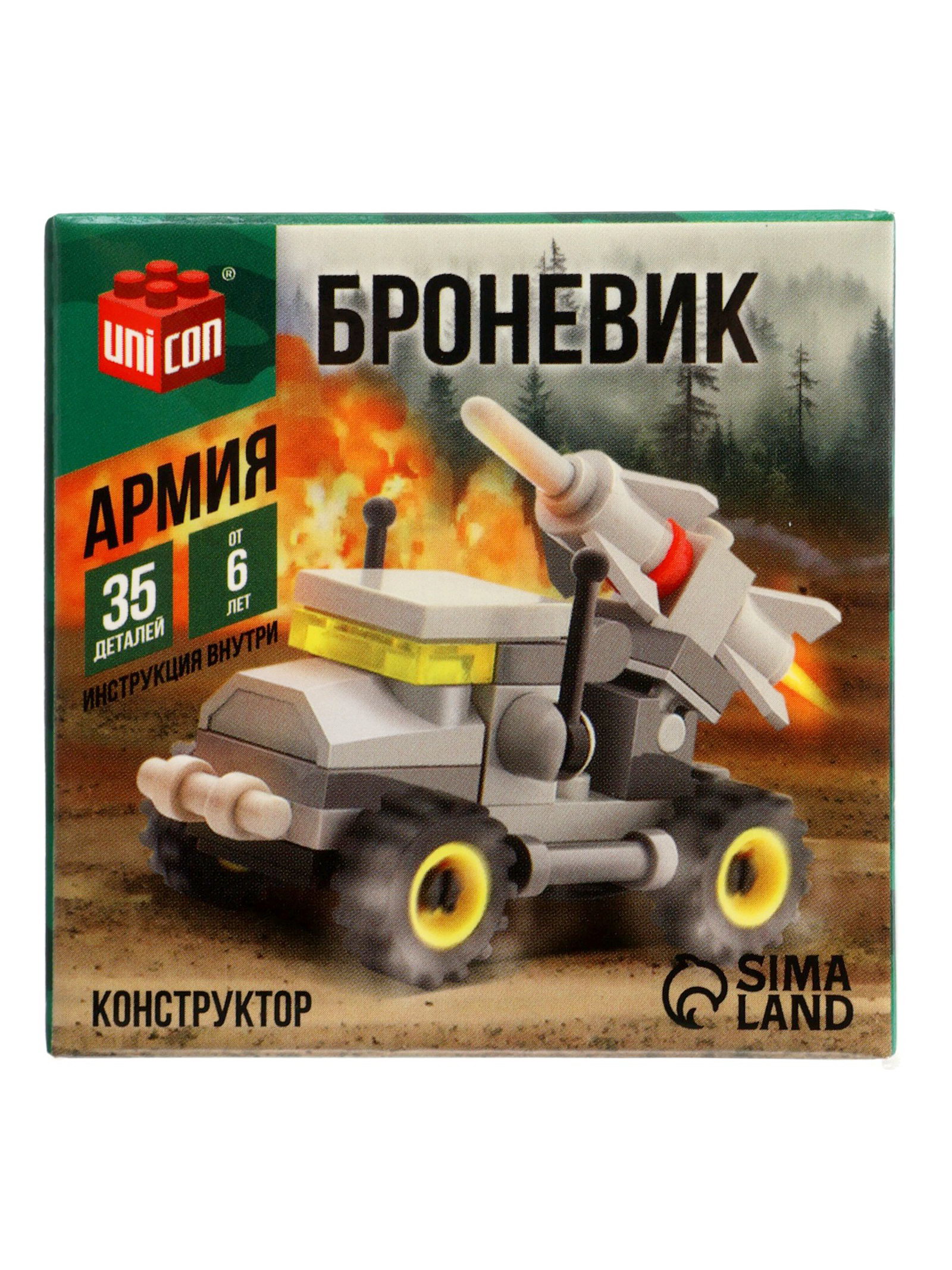 Конструктор "Машина с ракетой", 35 деталей, 4.5x7x7 см., UNICON, Китай