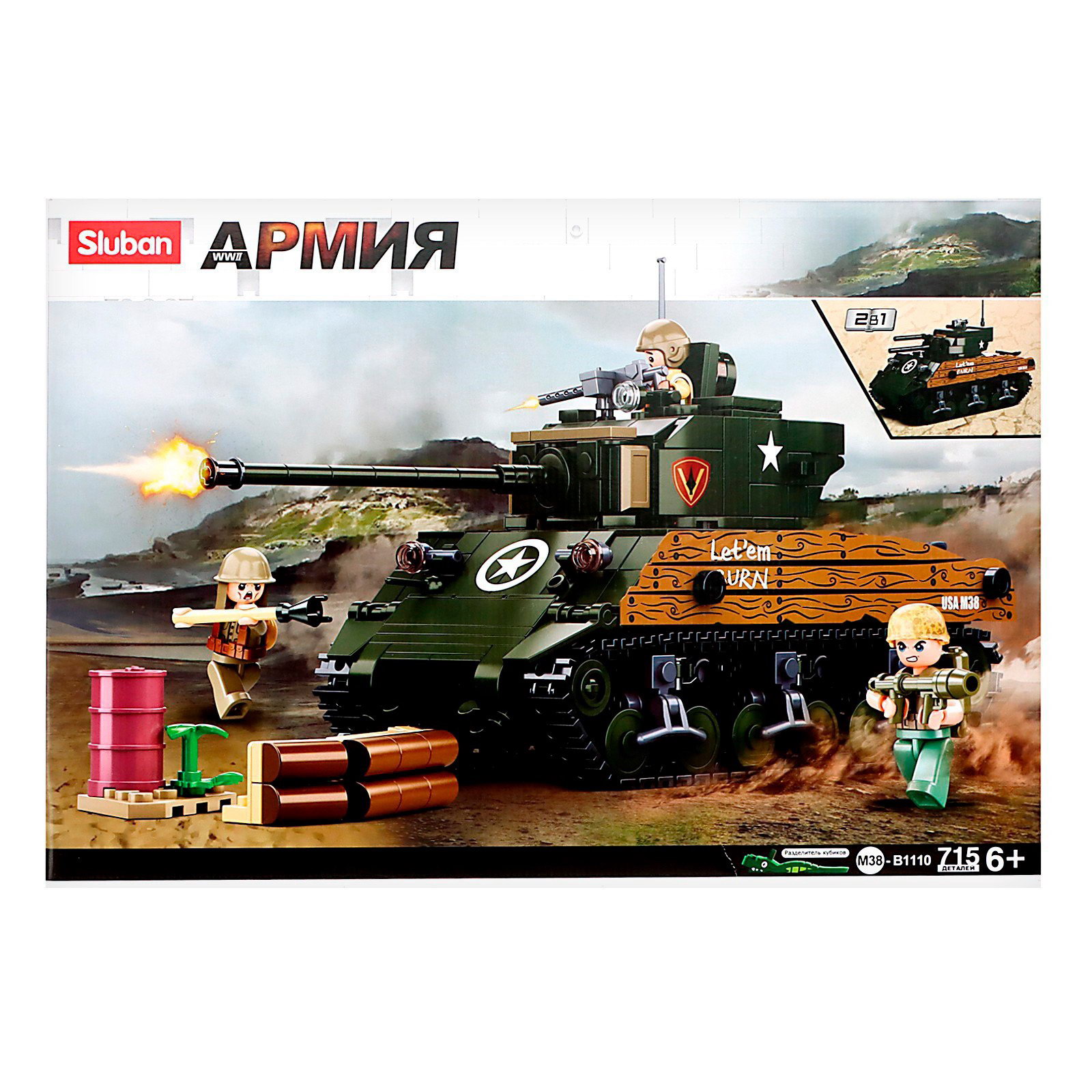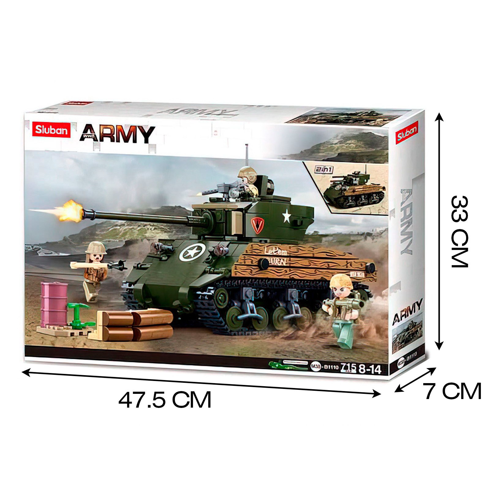 Конструктор Армия "Танк", 2 варианта сборки, 715 деталей, 33x47.5x6.5 см., Sluban, Китай