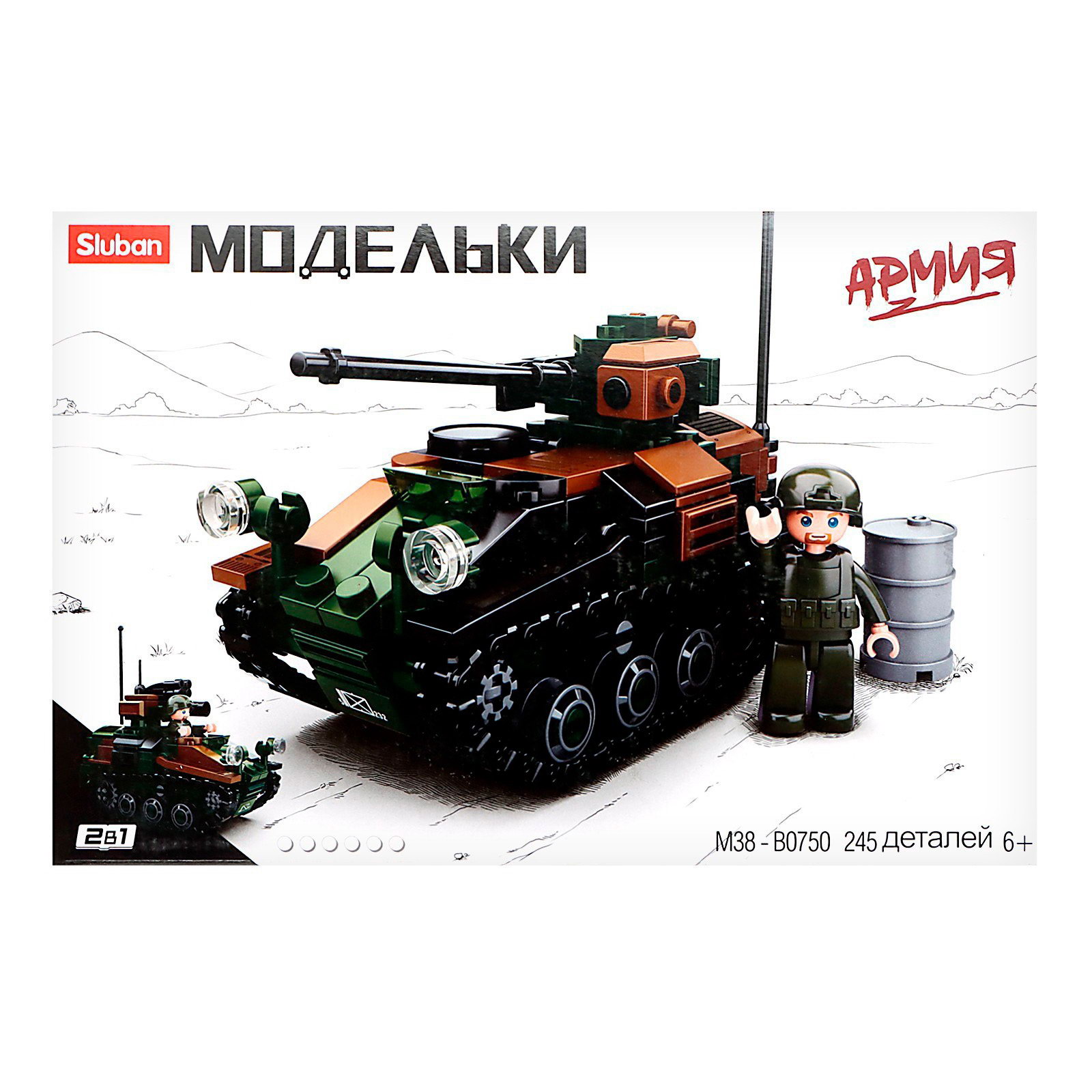 Конструктор Модельки "Танк", 2 варианта сборки, 245 деталей, 19.5x28.5x5.5 см., Sluban, Китай