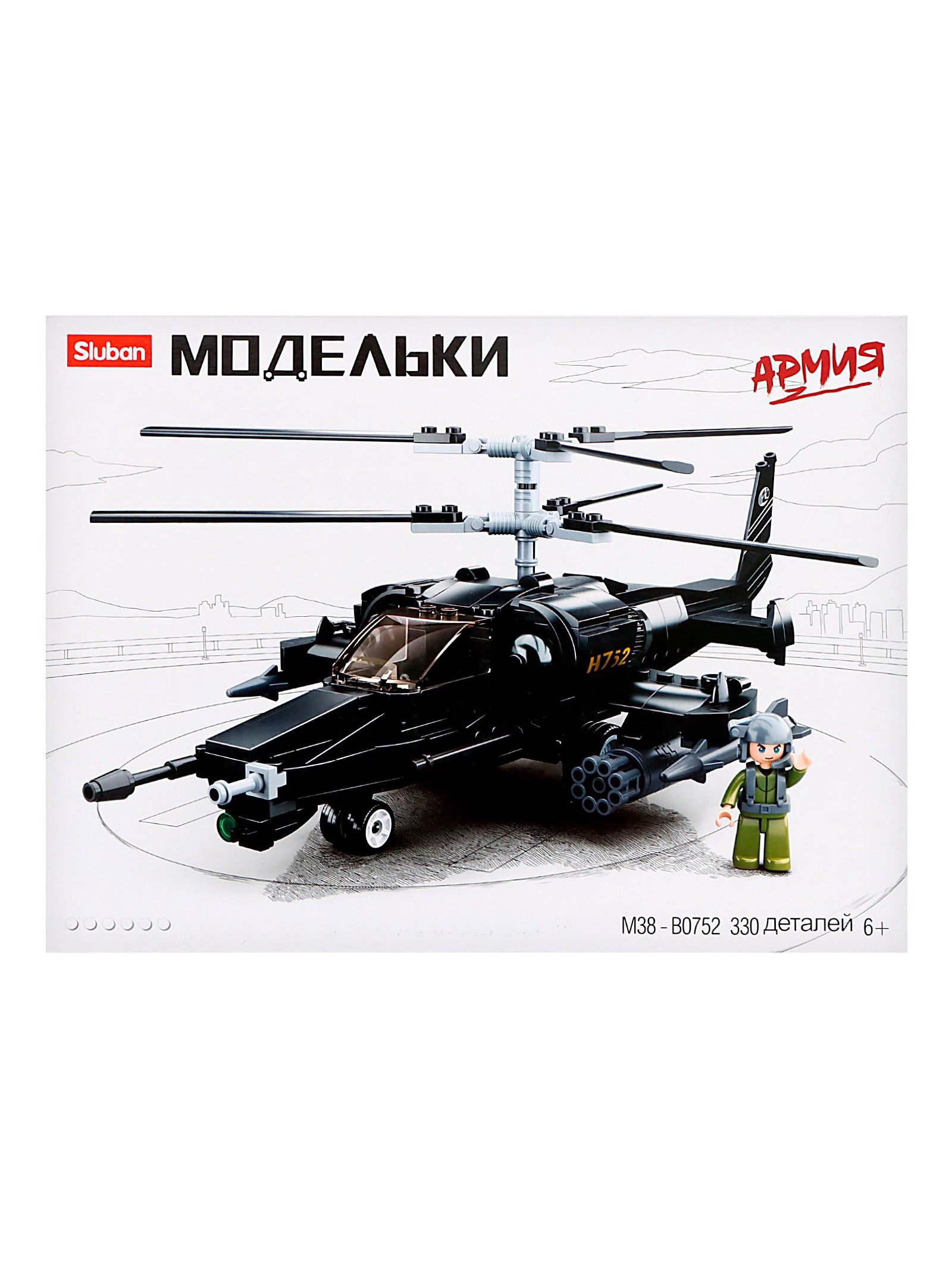 Конструктор Модельки "Вертолёт", 330 деталей, 28.5x38x7 см., Sluban, Китай