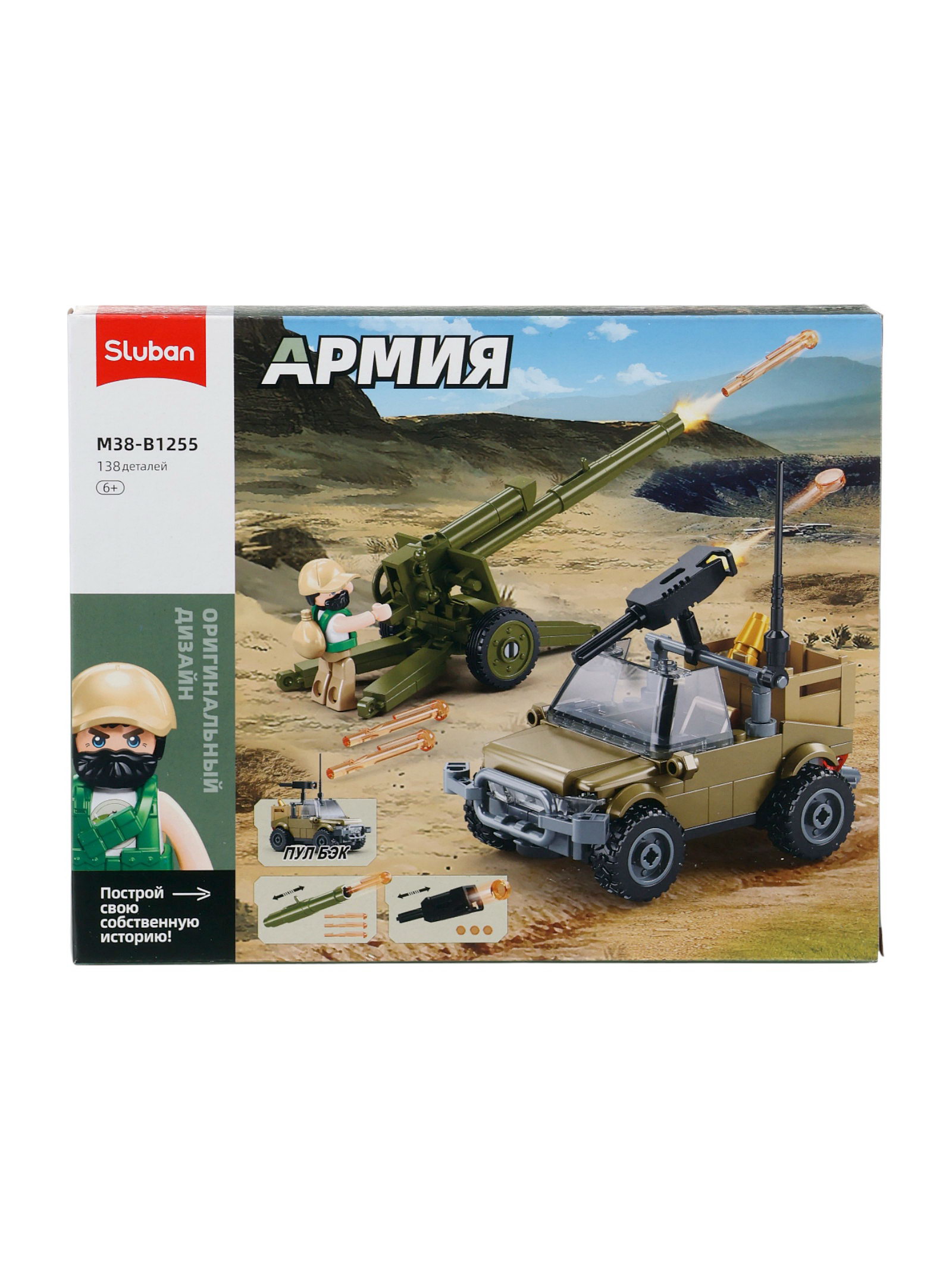 Конструктор "Армия. Артиллерийский расчёт", с джипом, 138 деталей, 18.9x23.7x4.5 см., Sluban, Китай