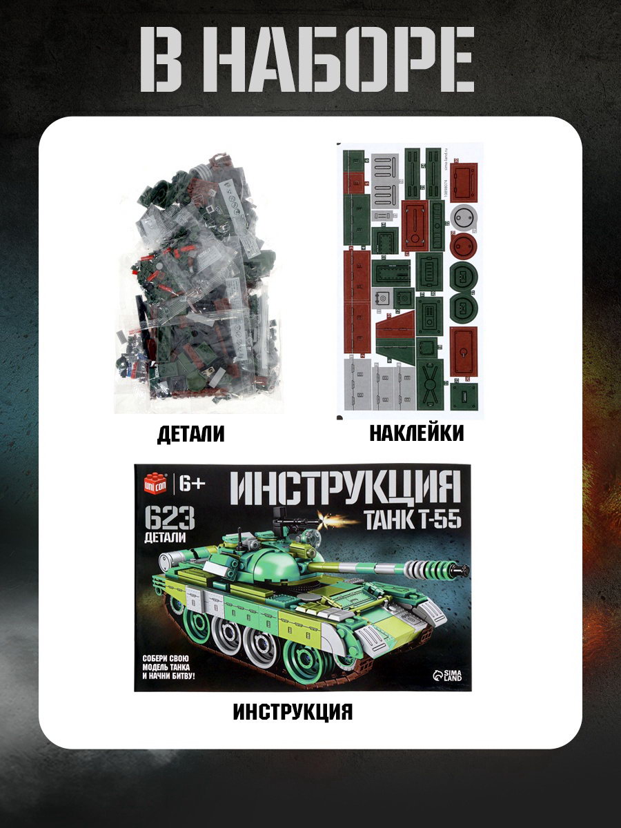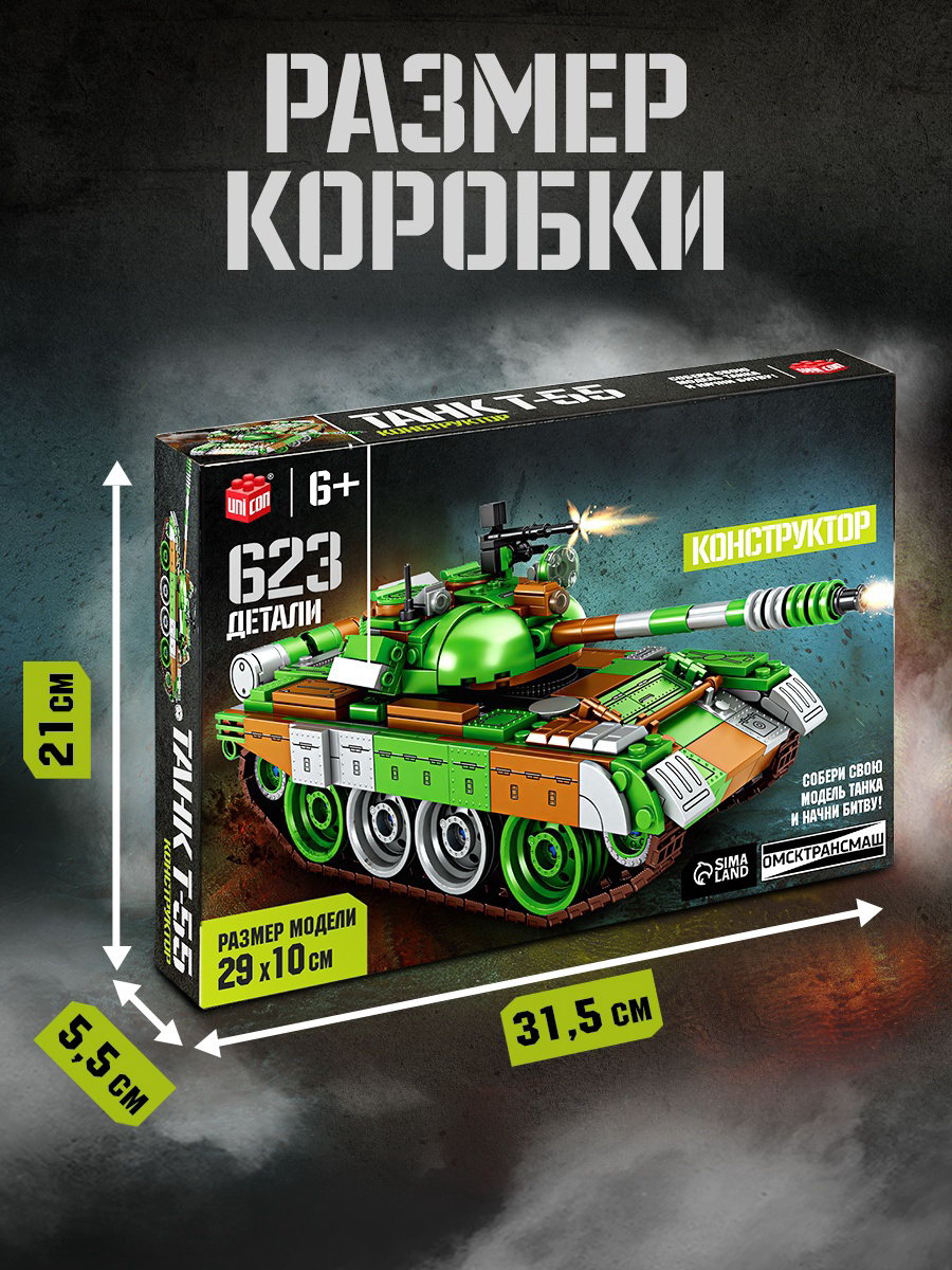 Конструктор "Танк Т-55", подвижные элементы, 623 детали, 40x8x28 см., UNICON, Китай