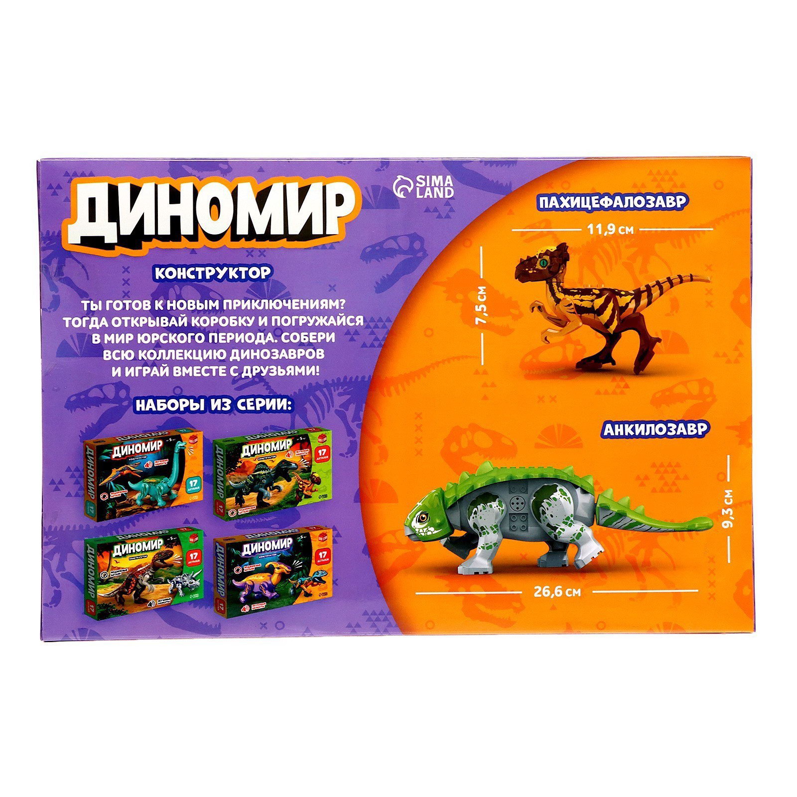 Конструктор "Диномир", пахицефалозавр и анкилозавр, звуковые эффекты, 22 детали, 5.5x6.5x20.5 см., UNICON, Китай