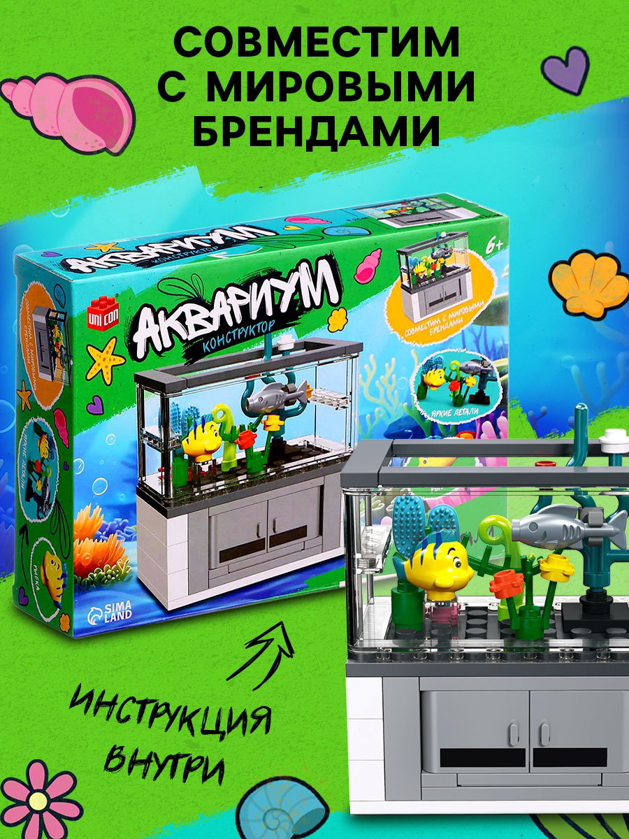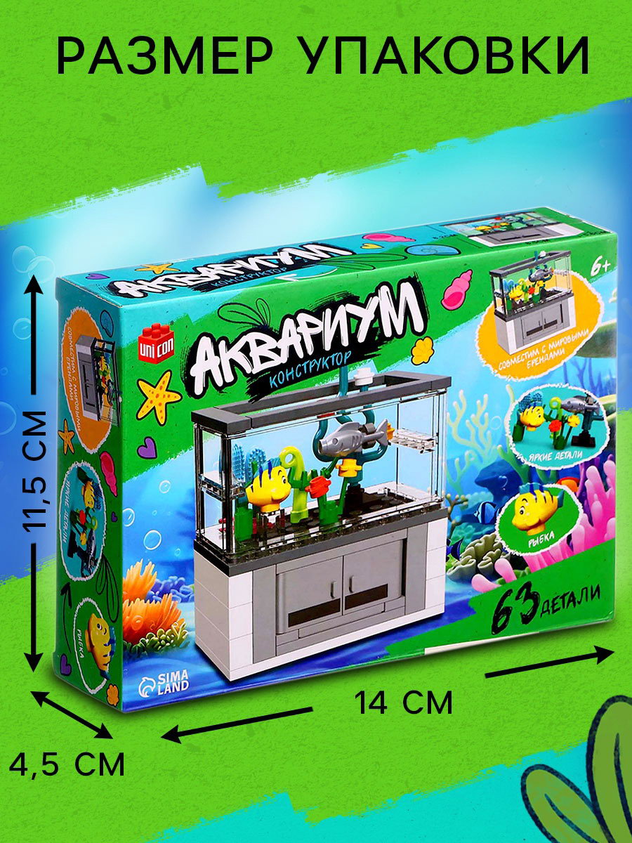 Конструктор "Аквариум", рыбки, 63 детали, 19x4.5x13 см., UNICON, Китай