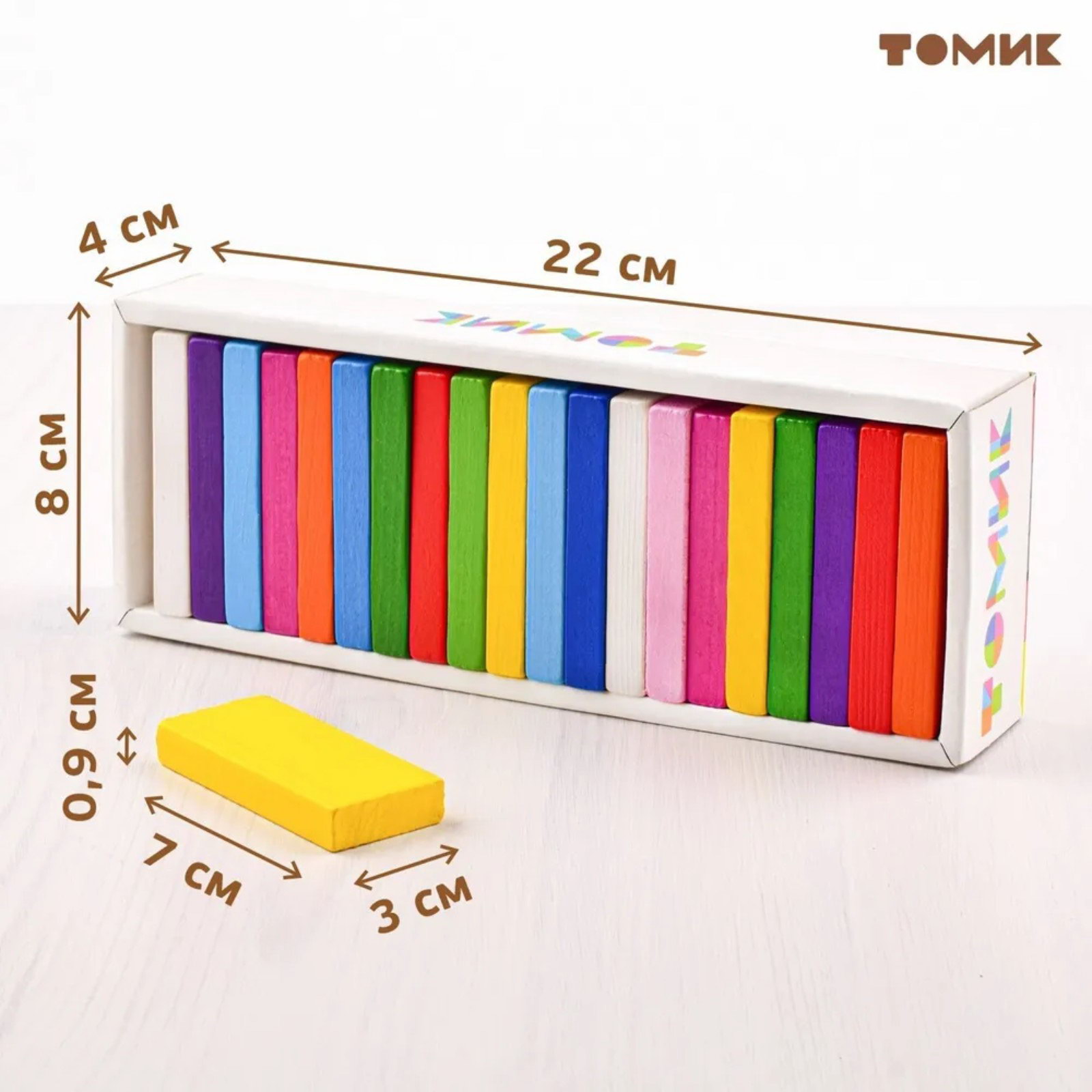 Плашки цветные, 28 деталей, деревянный конструктор, 4x3x26 см., Томик, Россия