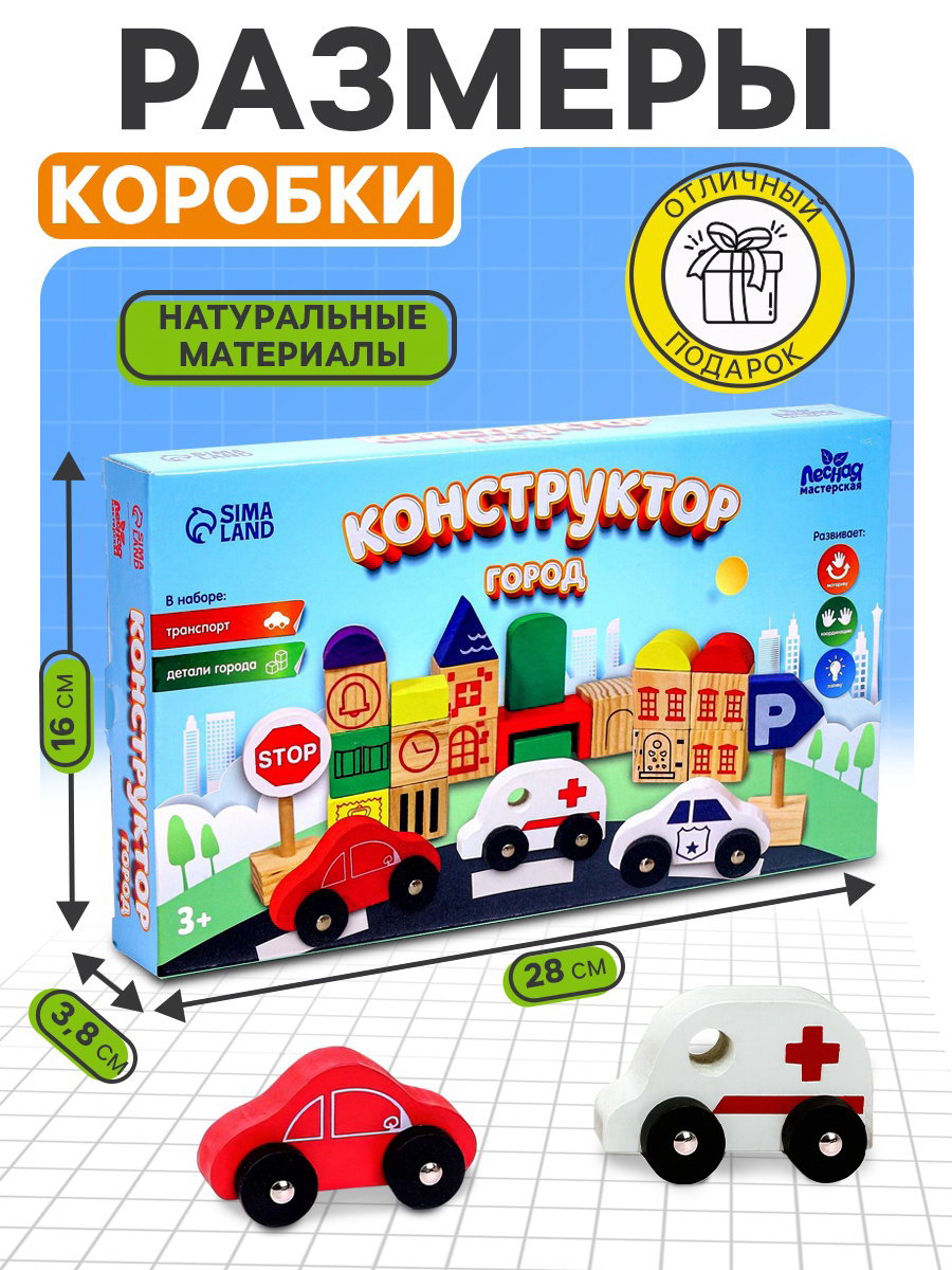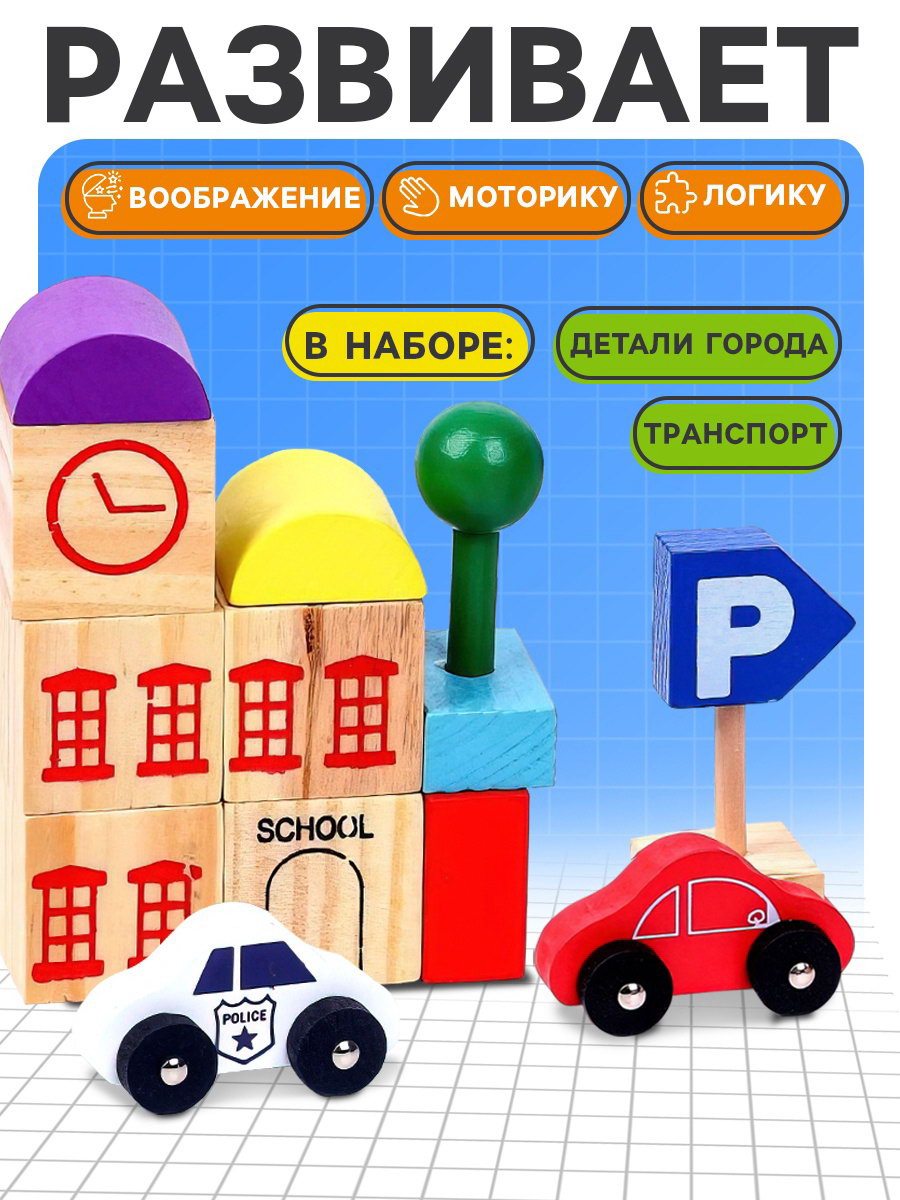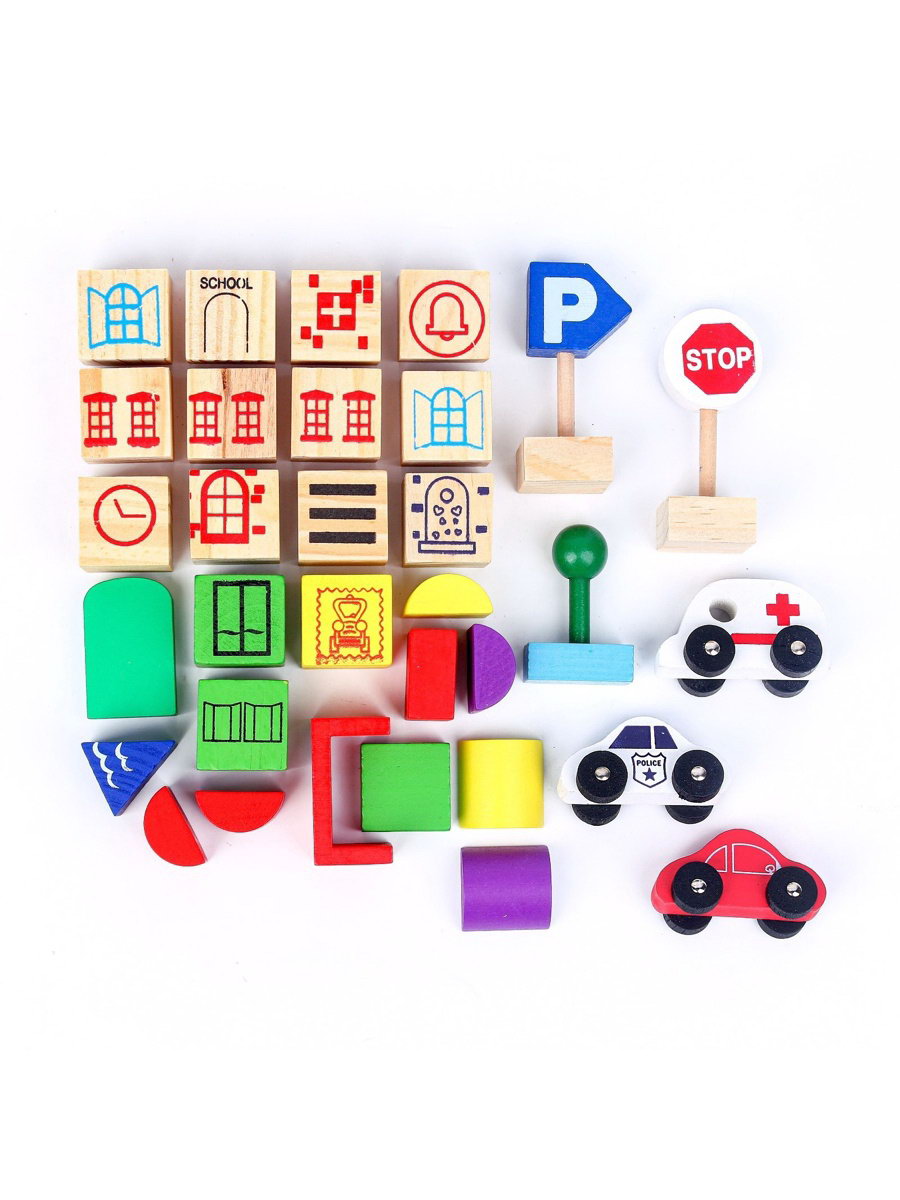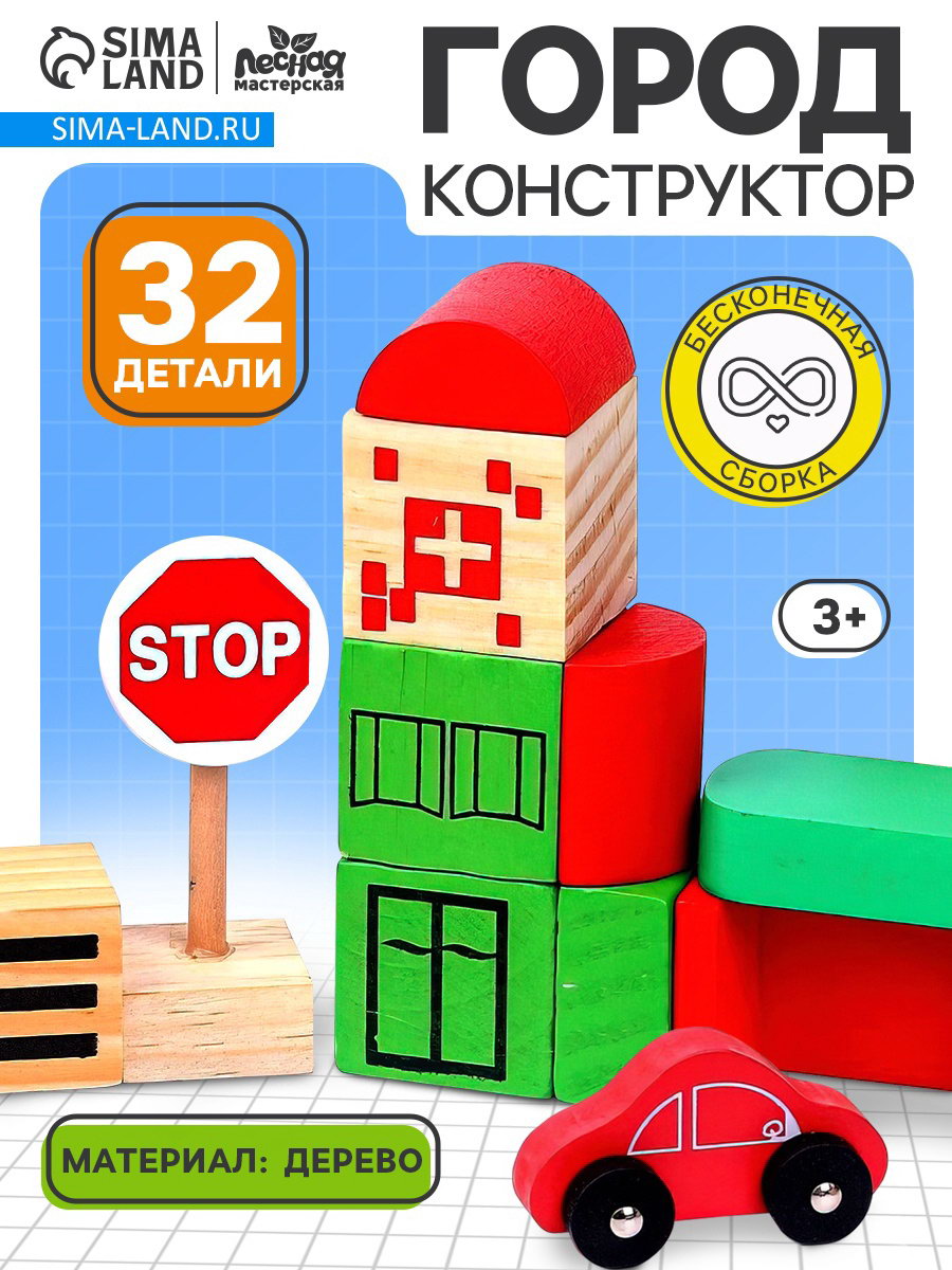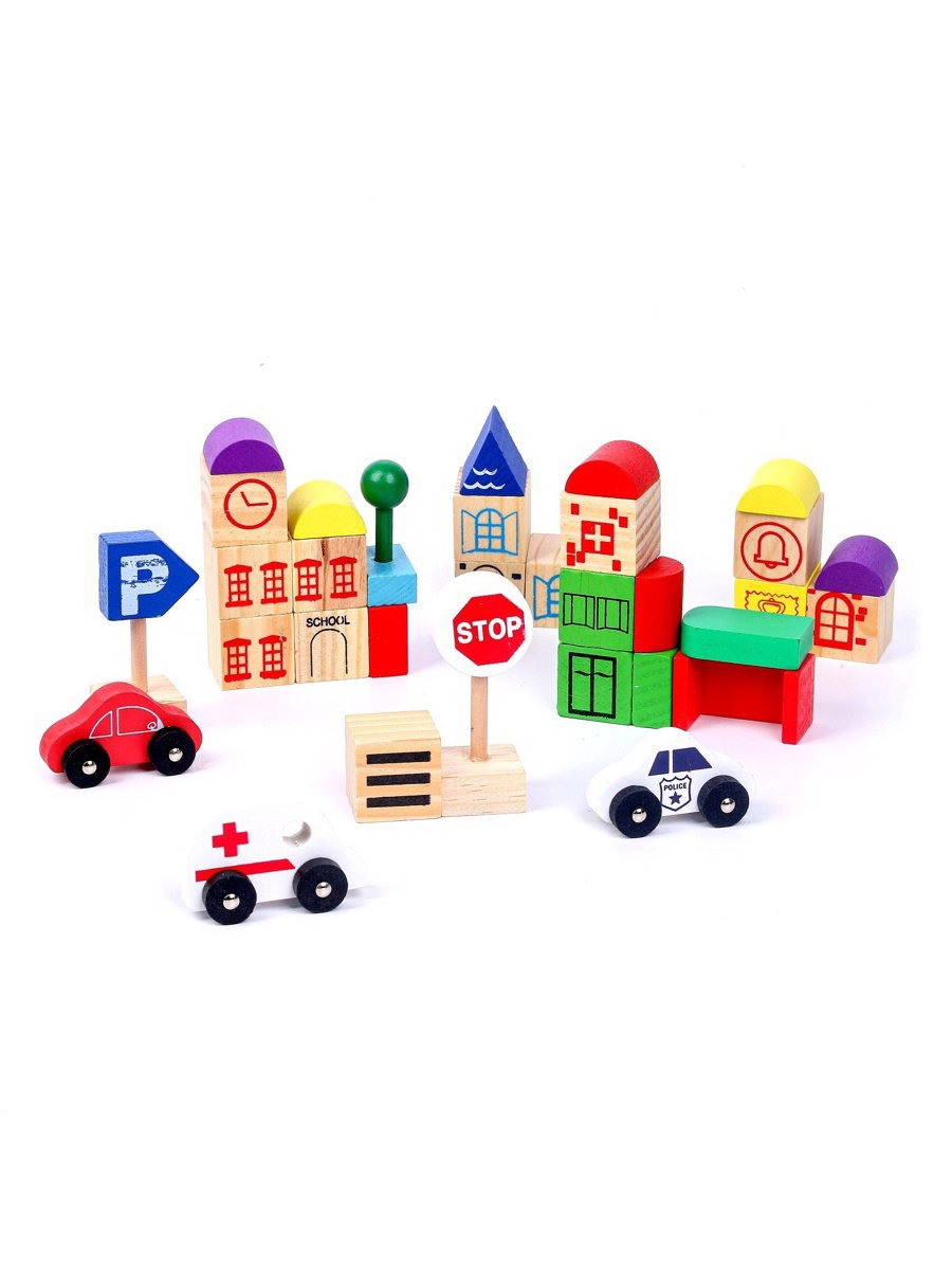 Конструктор деревянный "Город", 32 детали, 3.8x28x16 см., Лесная мастерская, Китай
