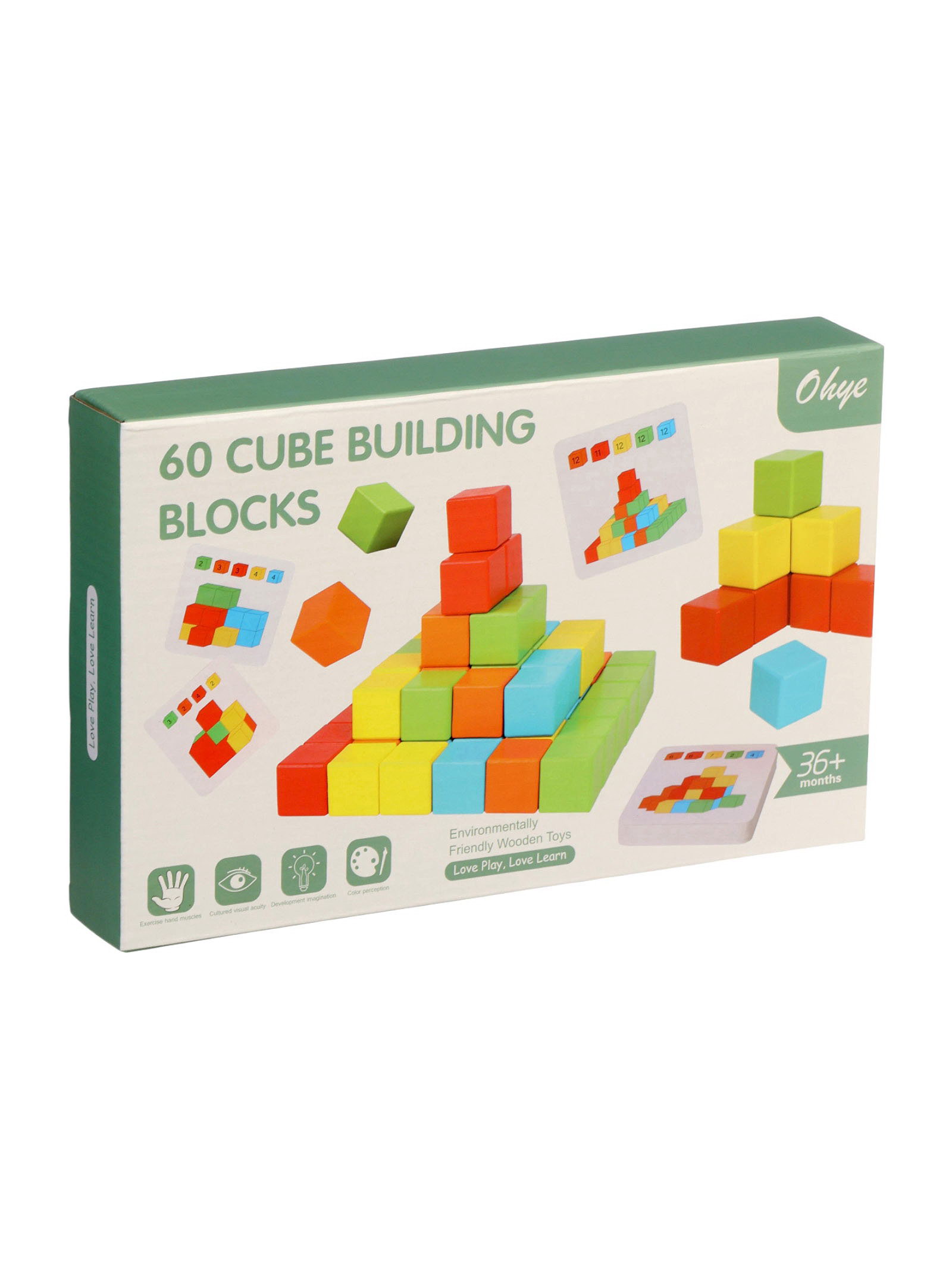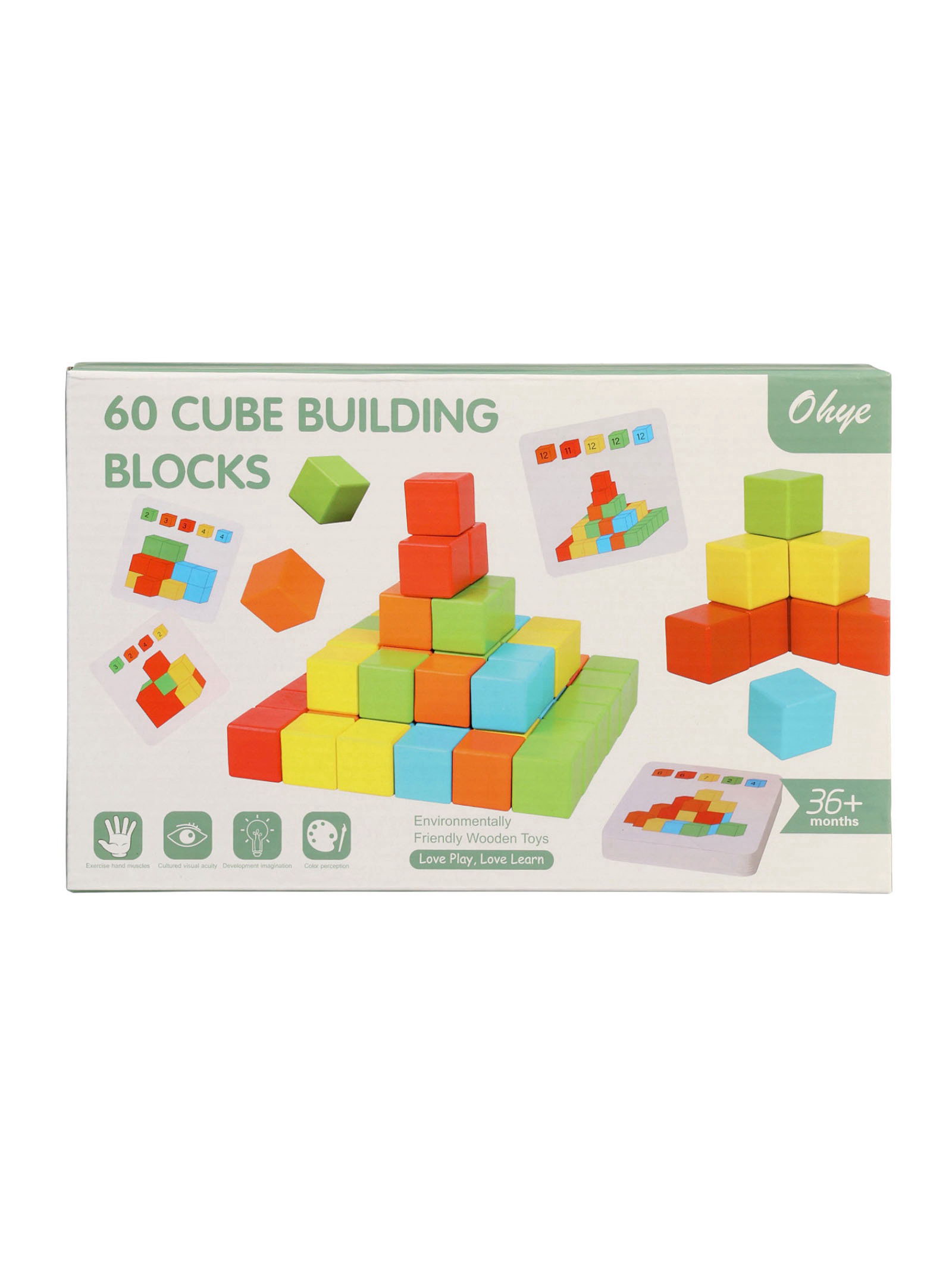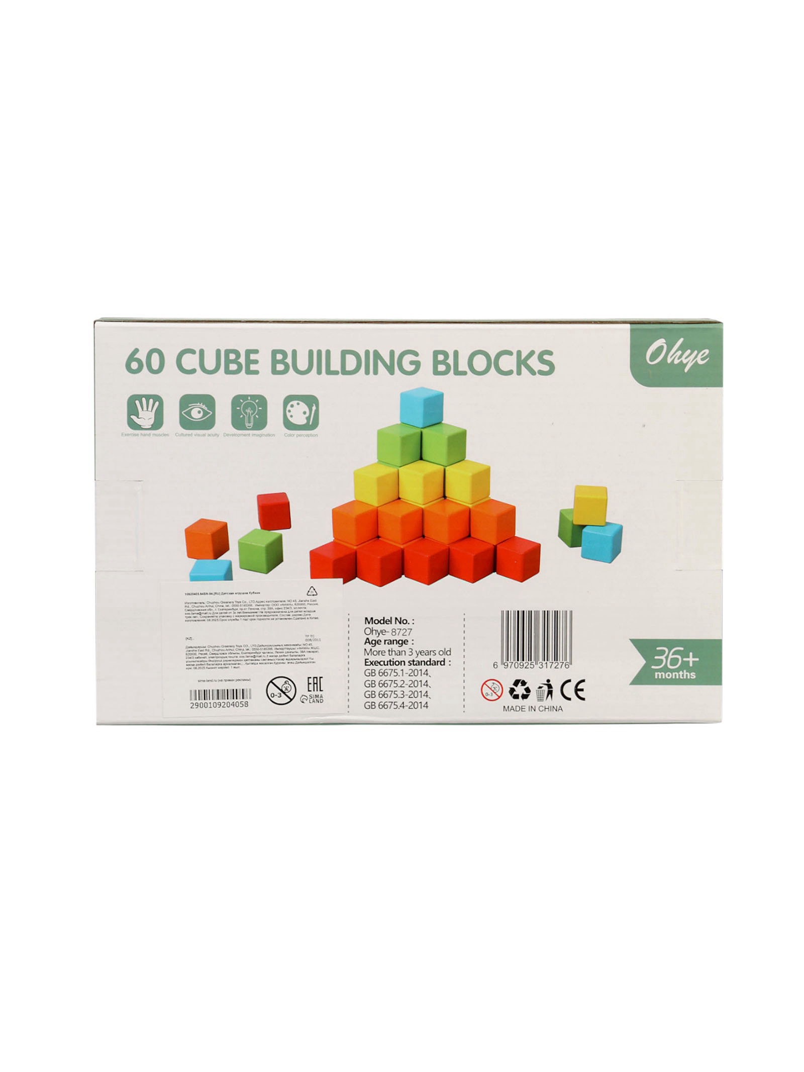 Детский набор деревянные кубики, цветные, 60 штук, 18x28x4.5 см., Китай