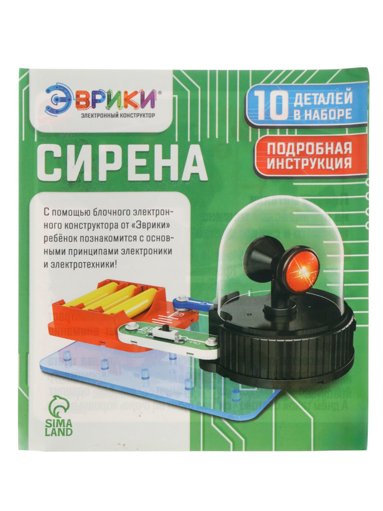 Электронный конструктор "Сирена", 10 элементов, 15.5x13x9.5 см., Эврики, Китай