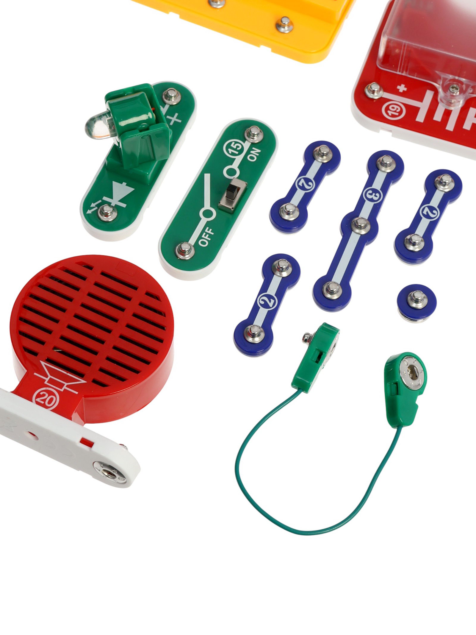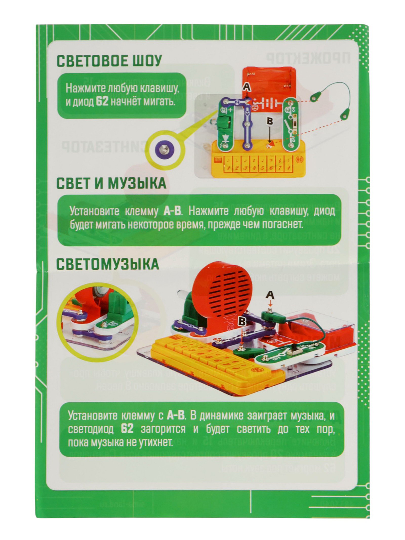 Размер упаковки: 8.5 x 15 x 13 см. Игрушка с видео: Да Для кого: Унисекс tnved: 9503004000 Возраст: От 8 лет Тематика конструктора: Опыты Типоразмер батареек: AA (LR6) Вид науки: Физика Батарейки в комплекте: Нет Вид исследований: Электричество Дополнительные функции: Звуковые эффекты Количество опытов: 7 Вид конструктора: Электронный Электронный набор "Синтезатор" это увлекательный конструктор для детей от 8 лет, позволяющий собрать семь различных электронных устройств из 11 компонентов. С его помощью ребёнок сможет создать собственный синтезатор, прожектор и другие интересные проекты, развивая инженерные навыки и творческое мышление. Возможности набора